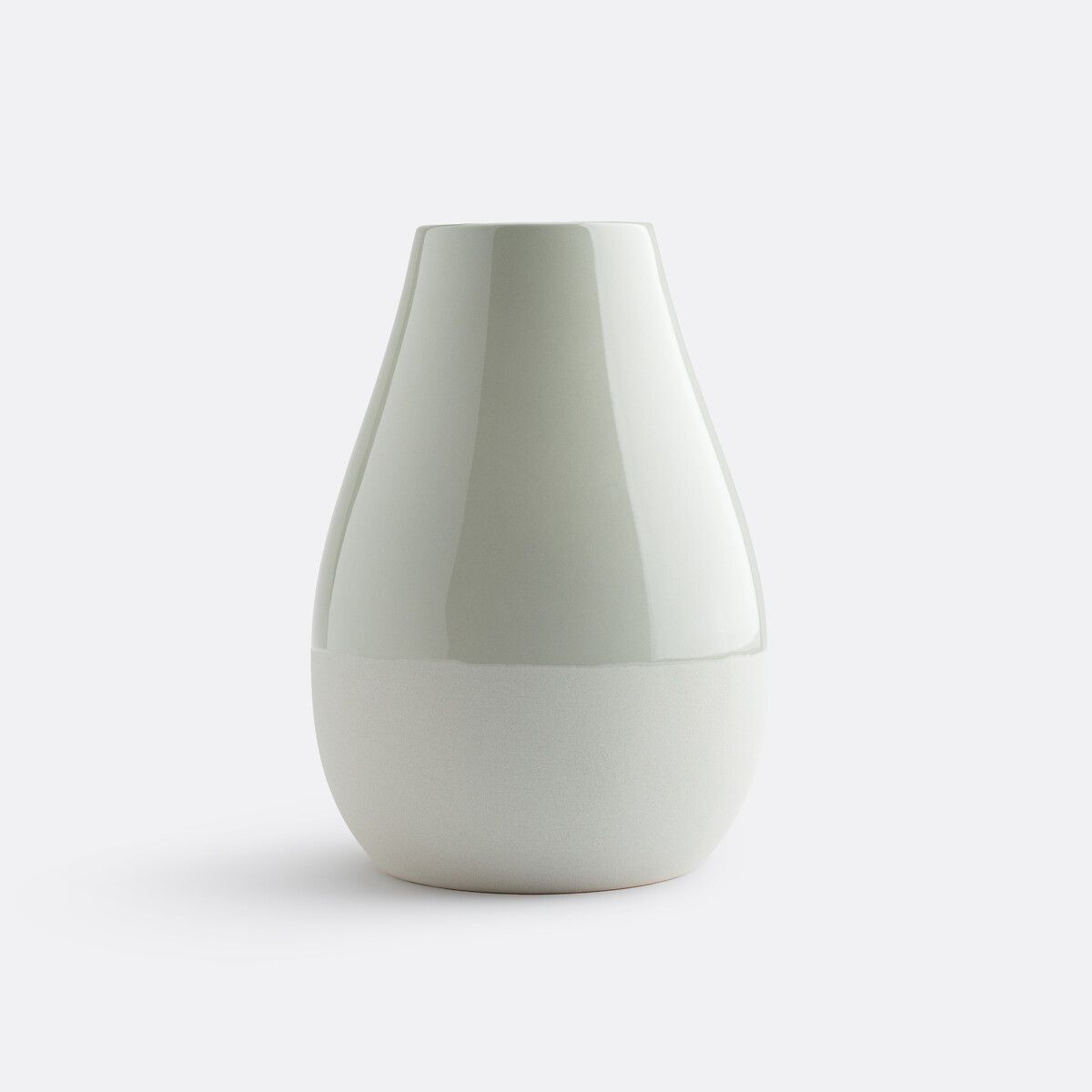 Ваза изготовлена из двух материалов: гладкой керамики сверху и зерненой снизу.