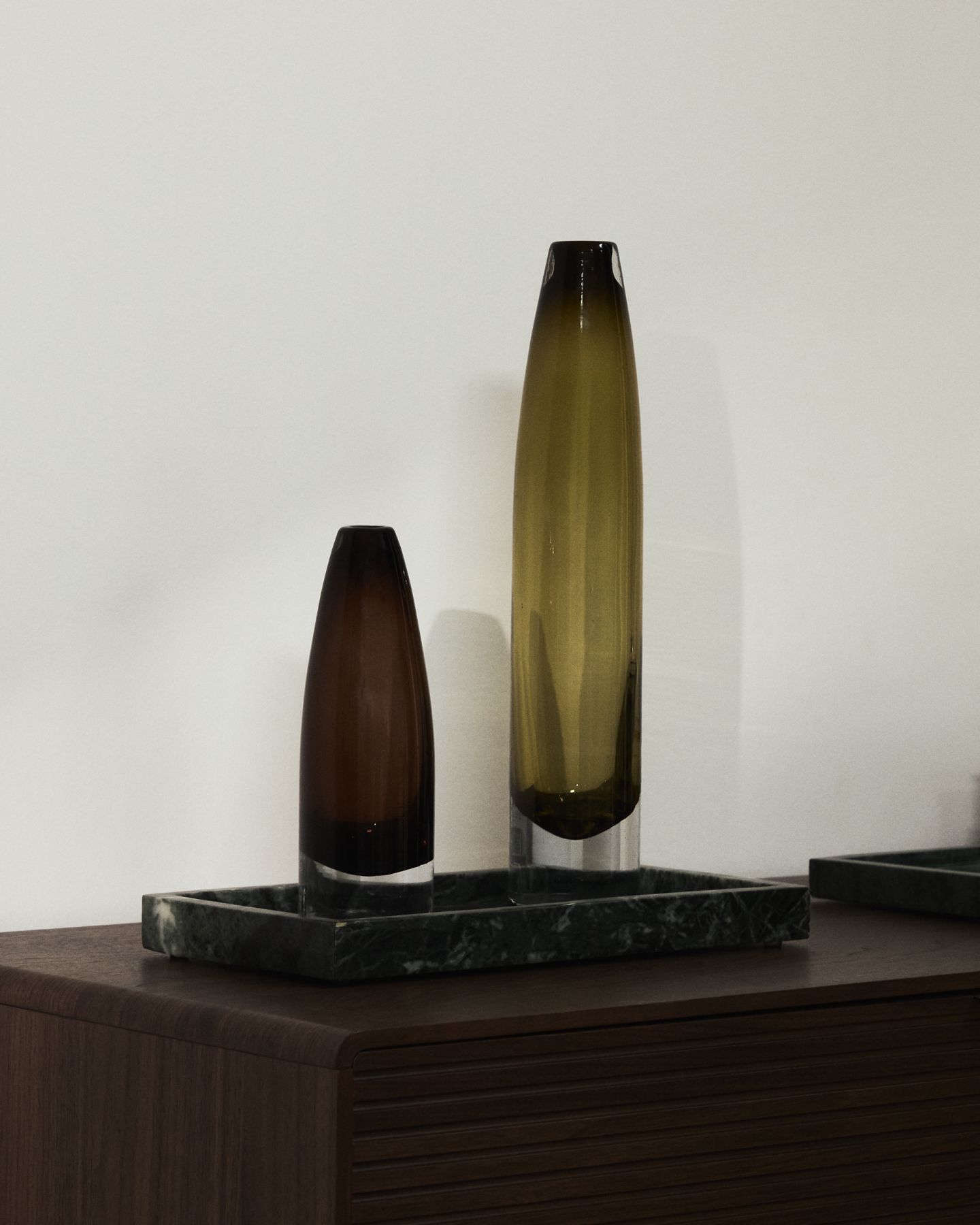 Коллекция ваз Toli отличается органичными округлыми формами, которые создают ощущение мягкости и движения в каждом предмете. Ручная выдувка гарантирует уникальность каждой вазы, а тонкие вариации изгибов и оттенков подчёркивают её эксклюзивный характер. Стекло создаёт изящную, светящуюся поверхность, идеально подходящую для придания особого шарма любому помещению.