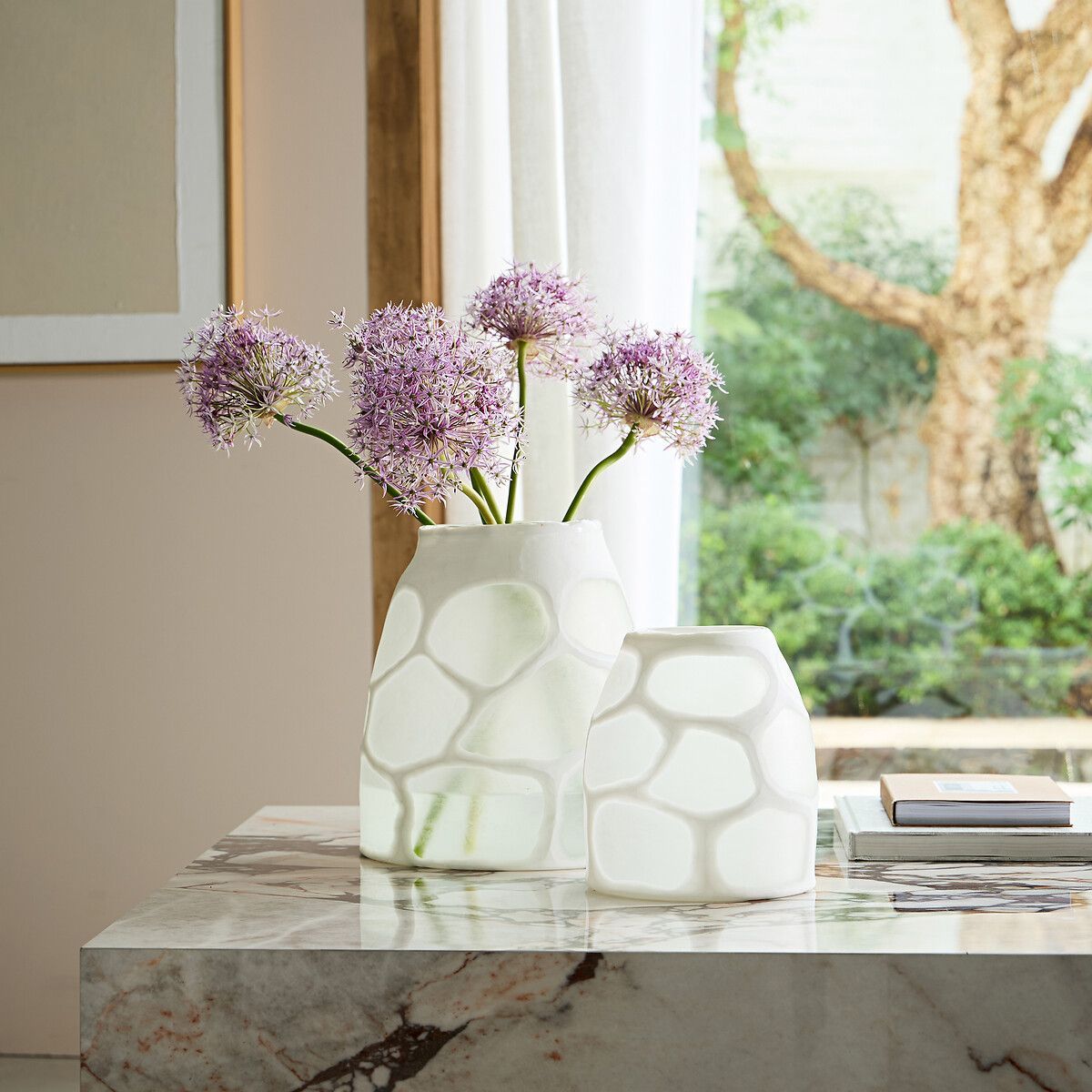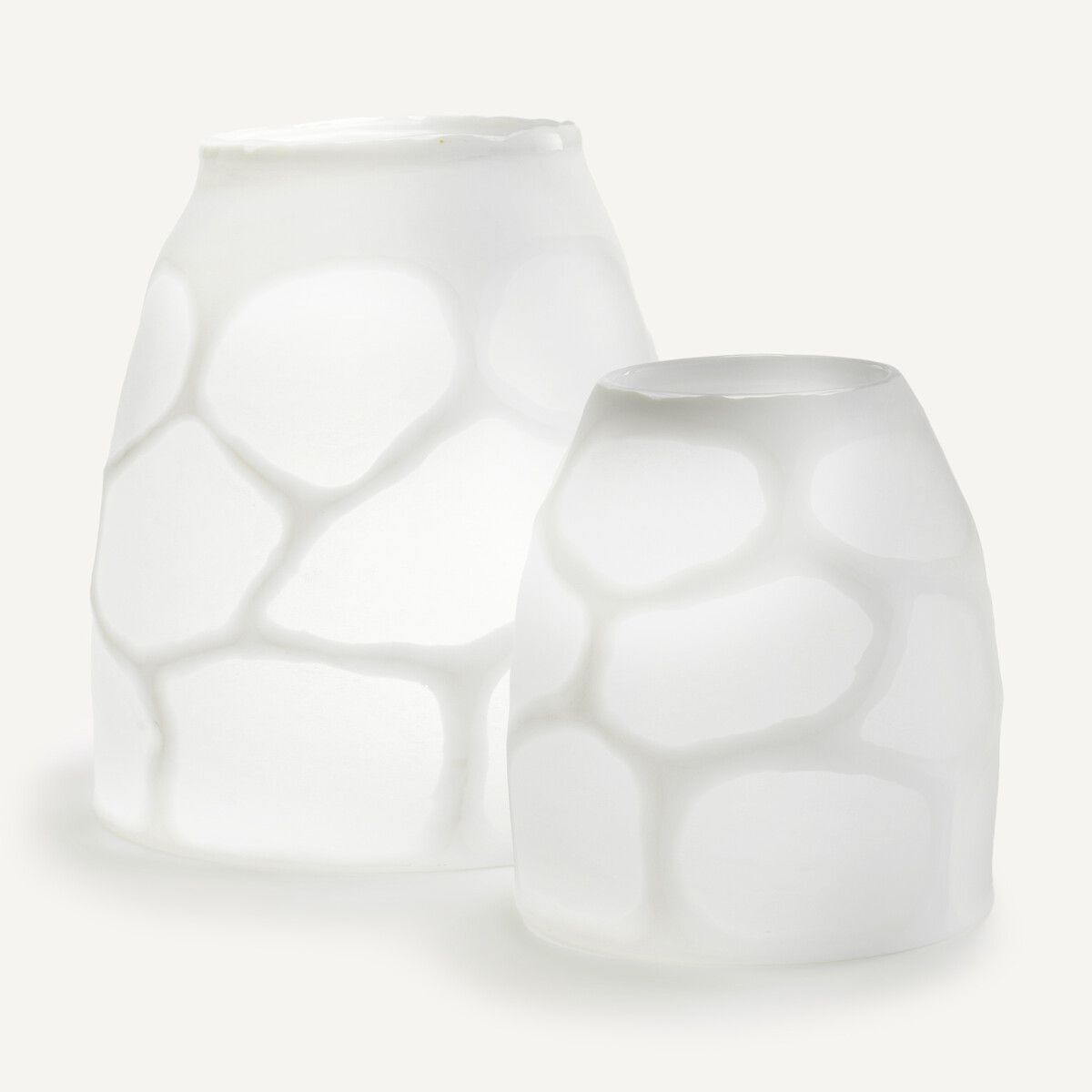 ФORMы, созданные игрой матовых и прозрачных участков, напоминают жилища троглодитов. Матовое стекло создает тонкий визуальный эффект, придавая этой изящной вазе текстурированный, опаловый вид.