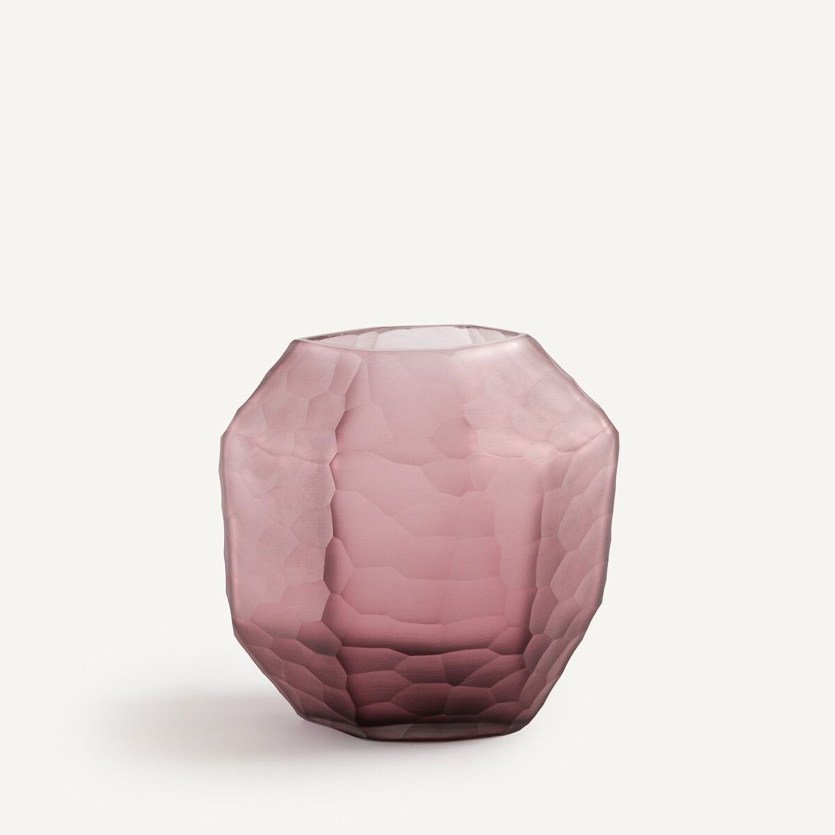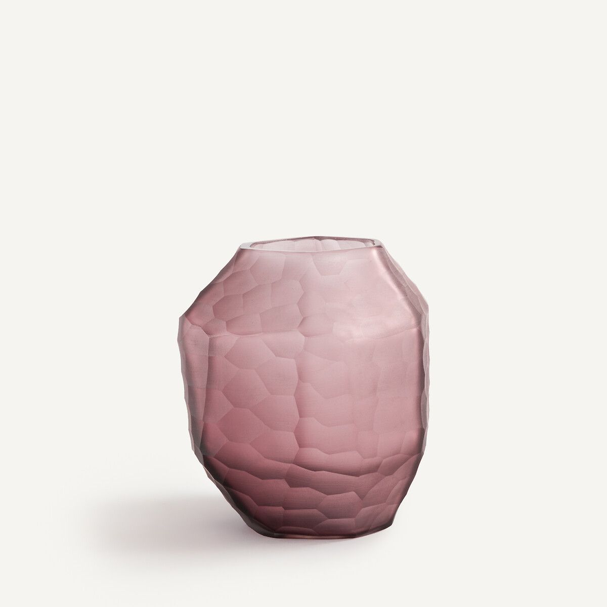Ваза Zenka воспевает красоту ремесленного мастерства. Выдутая с помощью рта и обработанная вручную, Zenka демонстрирует поверхность, испещренную округлыми, неровными гранями, словно отполированными временем. Ее глубокий винный оттенок мягко улавливает свет, создавая приглушенное свечение и меняющиеся отражения на каждой грани.