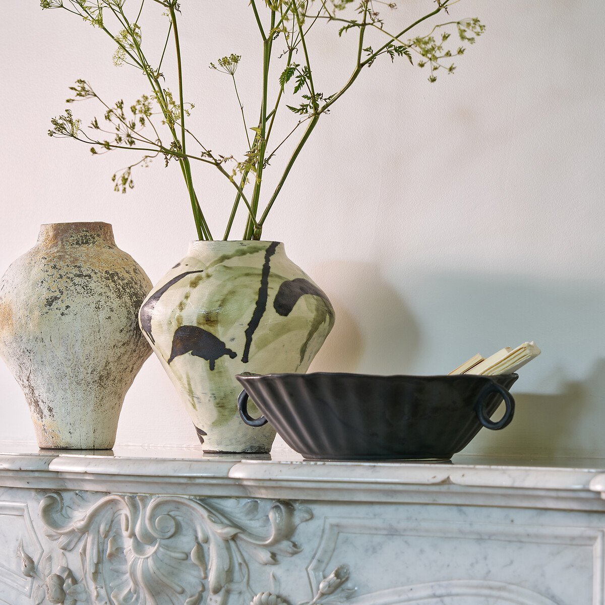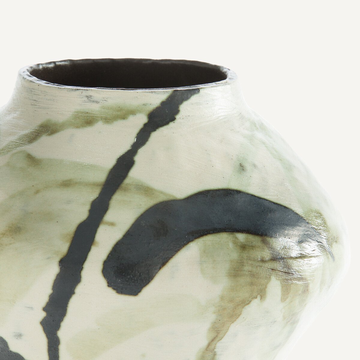 Эта ваза с навеянной природой цветовой палитрой и глянцевой глазурью отличается неровными боками и узким основанием. Необычное произведение, пронизанное поэзией.
