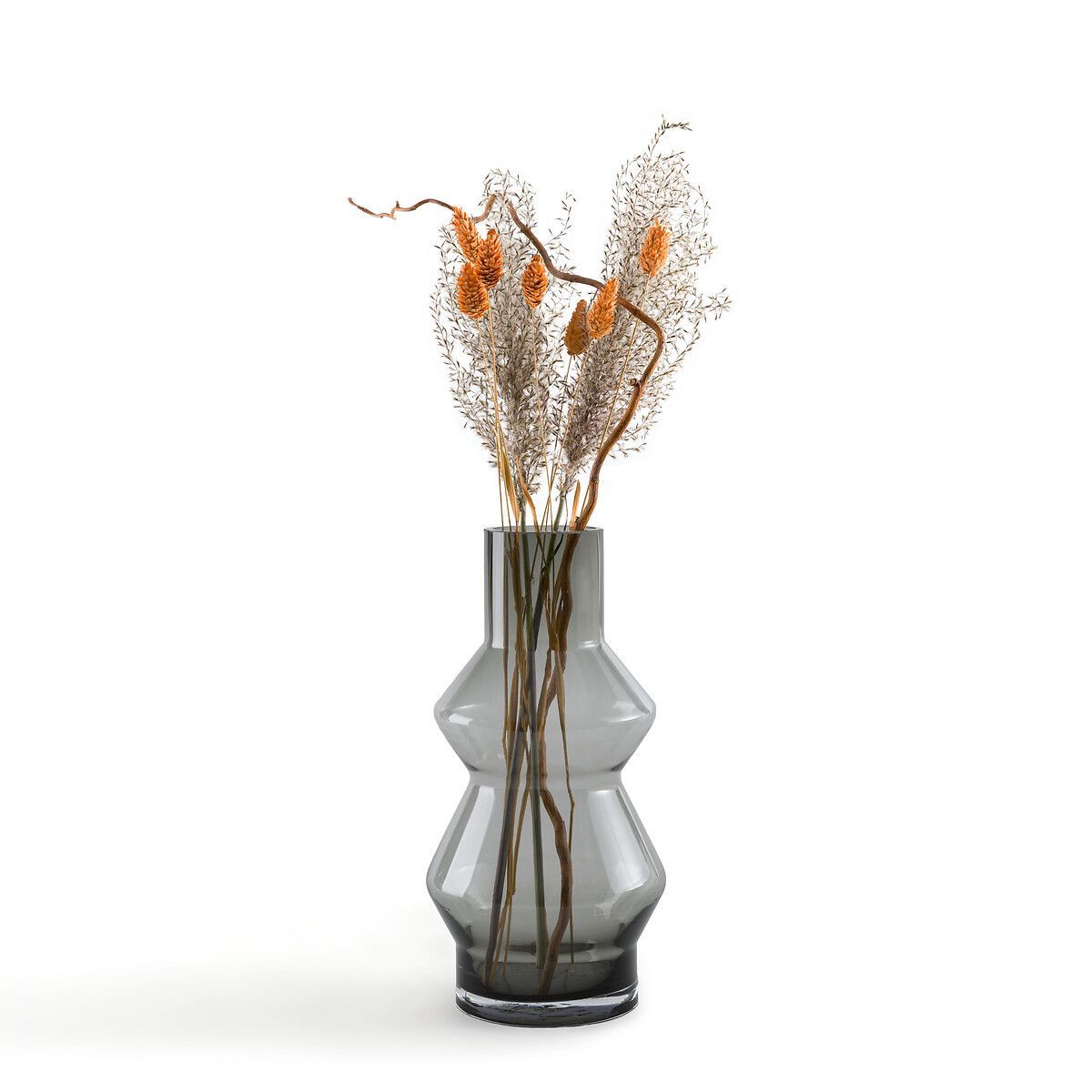 Ваза Chabby с геометрическим и изогнутым дизайном изготовлена из дымчатого тонированного стекла, чтобы создать игру света и тени, которая украсит ваши букеты.