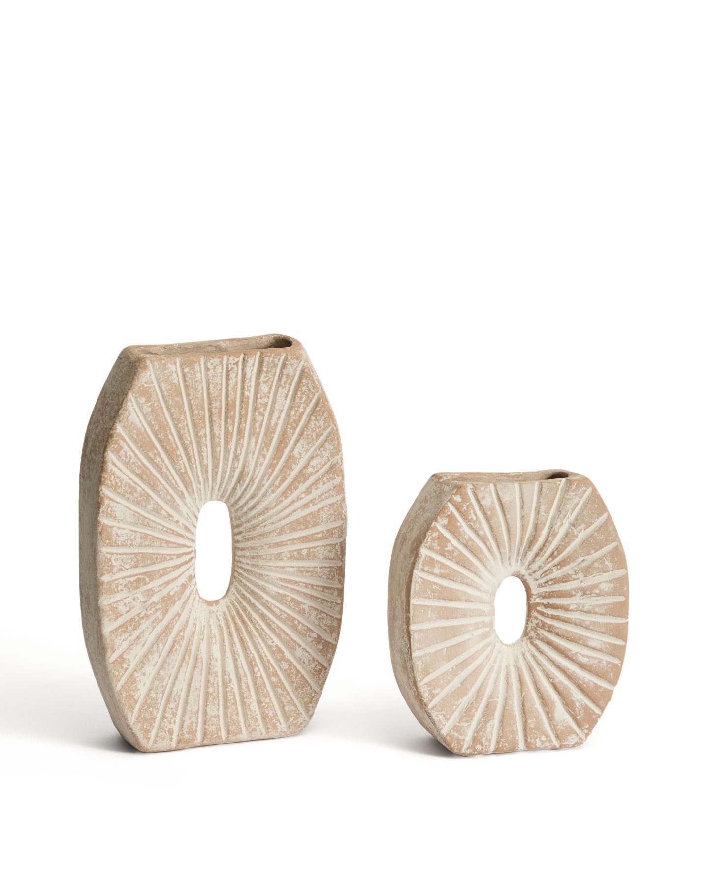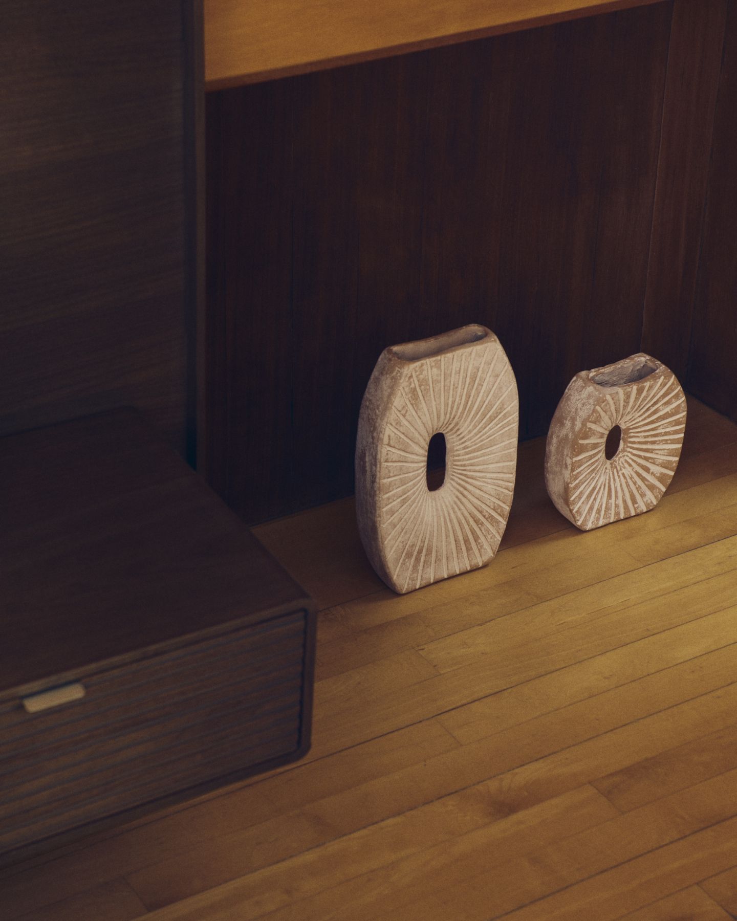 Эта ваза из папье-маше – скульптурное произведение с эффектом состаривания. Её дизайн с радиальными линиями и центральным отверстием привнесёт индивидуальность и неповторимость в любое пространство. Каждая ваза уникальна, с тонкими вариациями цвета и отделки, обусловленными природой материала и технологией изготовления. Декоративный предмет для тех, кто ценит аутентичность и оригинальность.