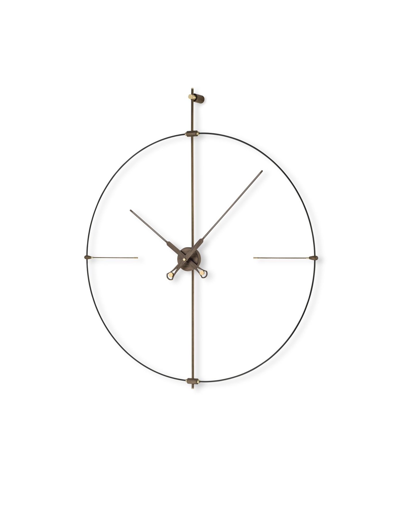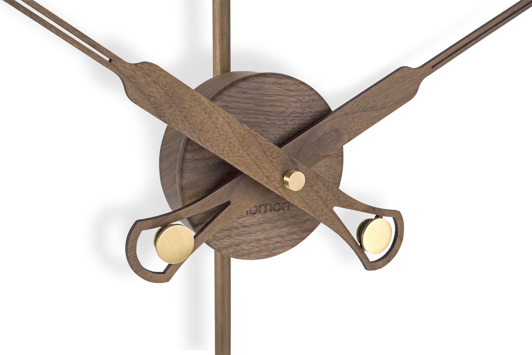 Часы из черного стекловолокна, сочетающие в себе полированные латунные детали со стрелками из натурального ореха.