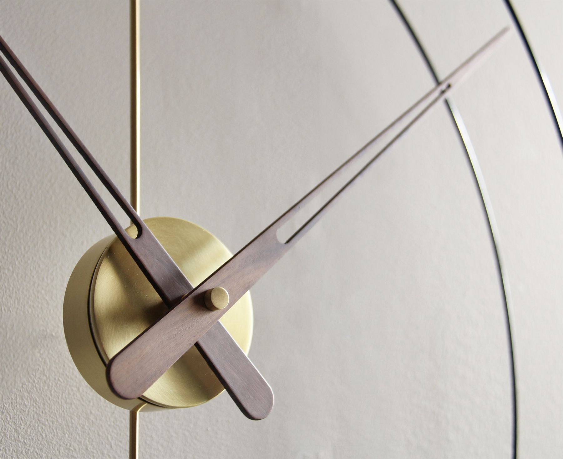 Часы из черного стекловолокна, сочетающие в себе полированные латунные детали со стрелками из натурального дуба.