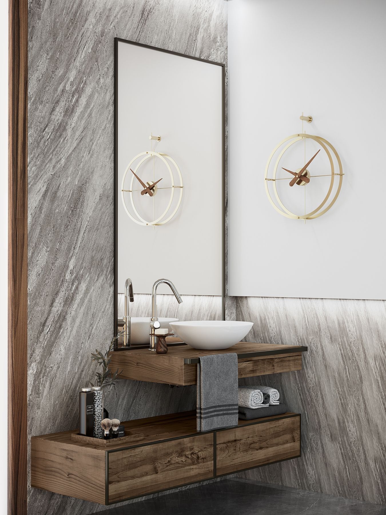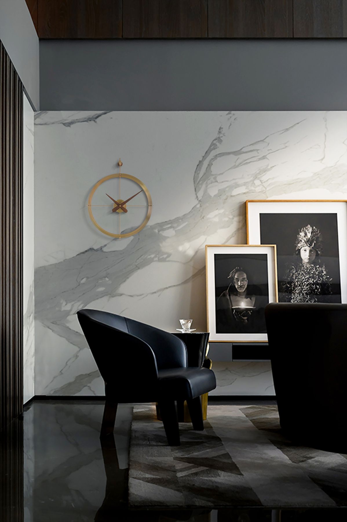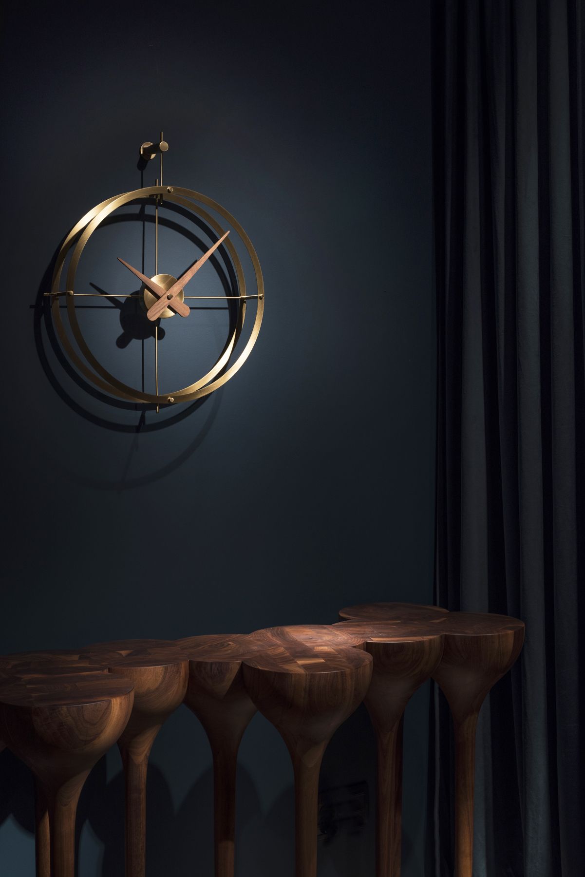 с кольцами из полированной латуни, комбинированные со стрелками из натурального орехового дерева.