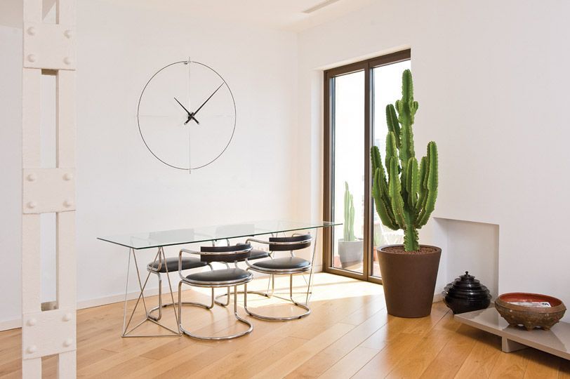 Тонкие и лёгкие, часы Bilbao из коллекции Aros Nomon великолепно смотрятся в пространствах, не перегруженных вещами, там, где много воздуха и места для жизни.Циферблат дизайнерских часов Bilbao выполнен из чёрного или белого фибергласа (стекловолокна). Корпус под немецкий механизм UTS изготовлен из хромированной стали. Стрелки вырезаны из прочнейшей древесины грецкого ореха. Желающие купить настенные часы Bilbao могут выбрать вариант финишной отделки стрелок: белый или чёрный лак.Диаметр часов составляет 105 сантиметров.