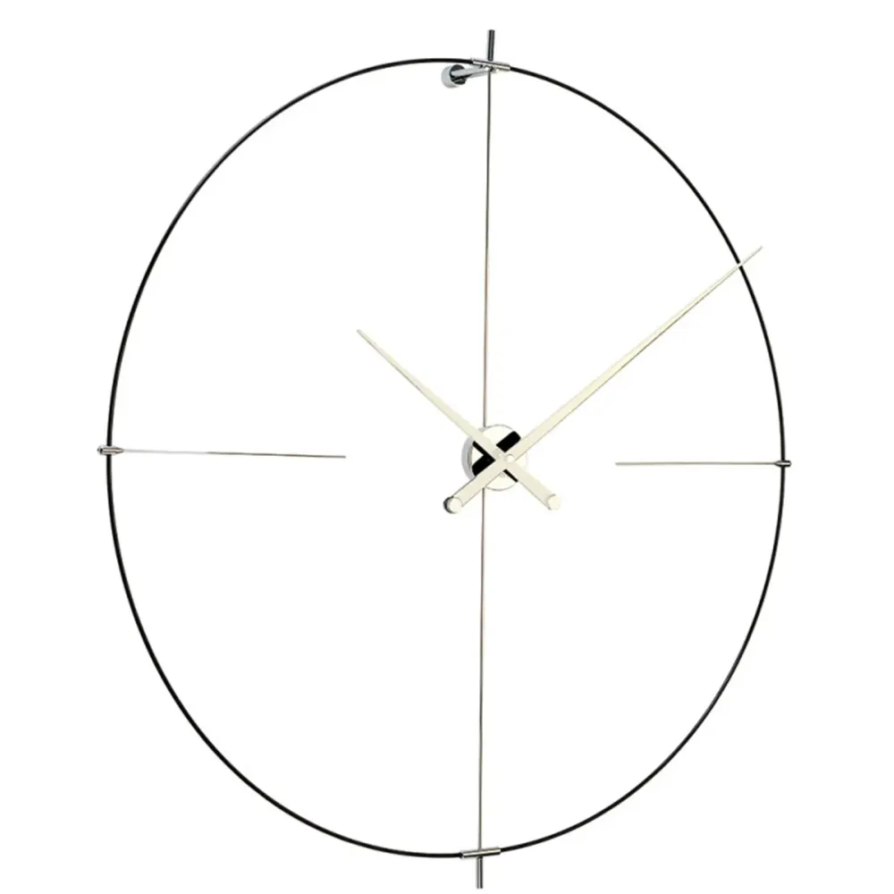 Тонкие и лёгкие, часы Bilbao из коллекции Aros Nomon великолепно смотрятся в пространствах, не перегруженных вещами, там, где много воздуха и места для жизни.Циферблат дизайнерских часов Bilbao выполнен из чёрного или белого фибергласа (стекловолокна). Корпус под немецкий механизм UTS изготовлен из хромированной стали. Стрелки вырезаны из прочнейшей древесины грецкого ореха. Желающие купить настенные часы Bilbao могут выбрать вариант финишной отделки стрелок:  белый или чёрный лак.Диаметр часов составляет 105 сантиметров.