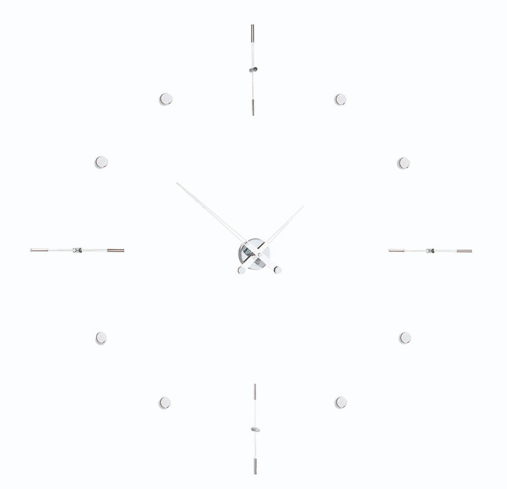 Компания Nomon предлагает купить настенные часы, которые подчеркнут оригинальность вашего вкуса. Модель Mixto весьма отдалённо похожа на то, что приходится встречать в обычных часовых магазинах. Её образ утончённый и уникальный.Часовые деления крепятся прямо на стену, а часового механизма от немецкой фирмы UTS почти не видно. Стрелки парят над стеной, исправно отсчитывая минуты. Воплощённая метафора текучести времени.Корпус настенных часов Mixto i выполнен из хромированной стали. Деления и стрелки тоже стальные. По желанию заказчика, они могут быть отполированы либо окрашены в один из ходовых цветов: белый, чёрный или красный.Диаметр циферблата по наиболее выступающим делениям составляет 110 см. Помимо модели Mixto i, в коллекции представлены часы большего размера — n и g. Они также доступны для заказа в нашем магазине.