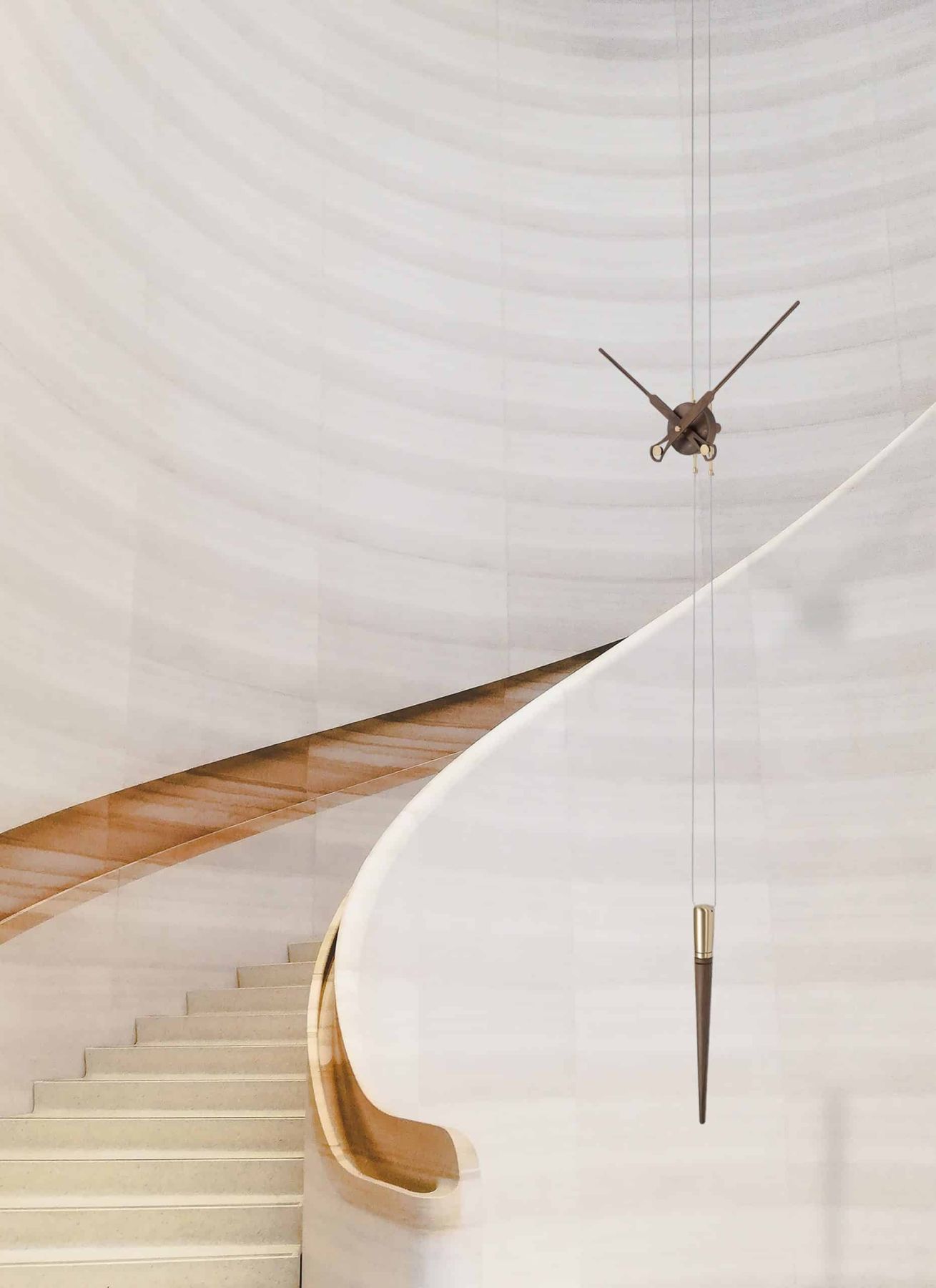 Дань уважения, которая направлена на восстановление престижа маятниковых часов путем обновления их эстетики. Может быть установлена на стене или потолке. Необходимая вещь для тех, кто хочет привнести индивидуальность в строгую обстановку.