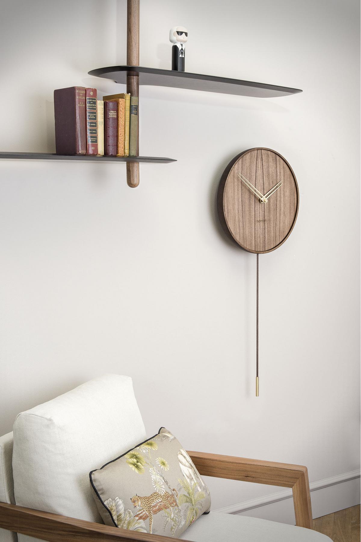 Корпус из орехового дерева, стрелки и маятник из полированной латуни.