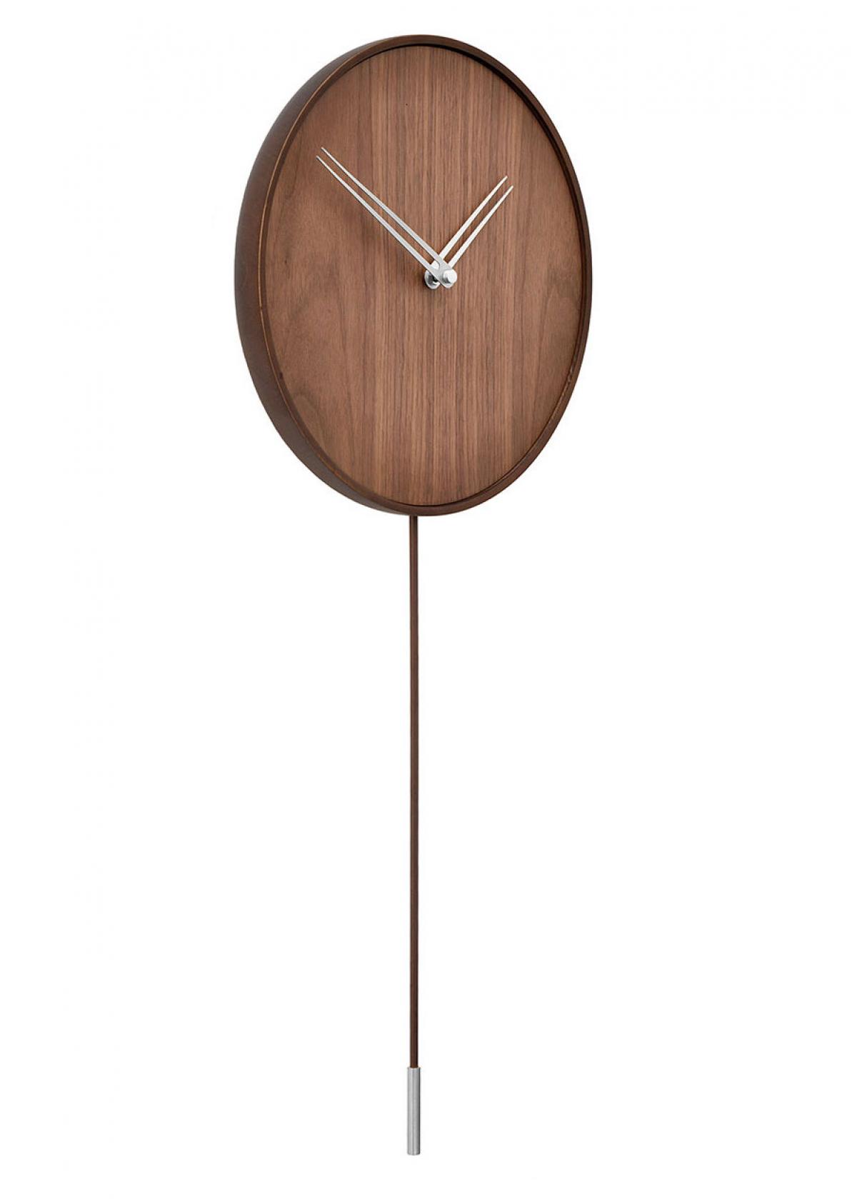 Корпус из дерева с отделкой под орех, стрелки и маятник из хромированной латуни.