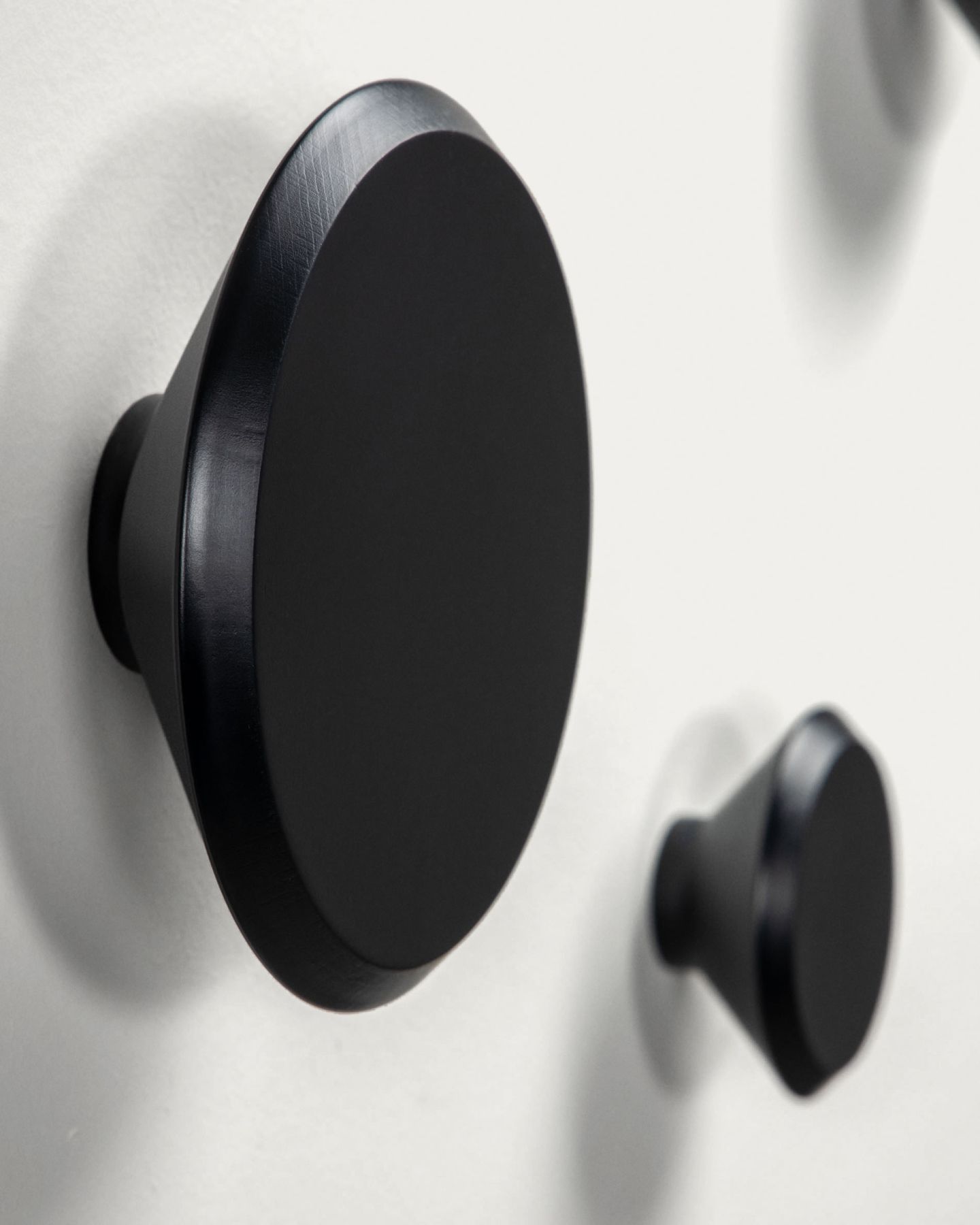 Набор Nadua разработан Ксавье Коркой из команды Kave Home. Набор из трех круглых вешалок разных размеров: Ø75 см, Ø100 см и Ø130 см. Они сделаны из массива бука с черным покрытием, подходящего цвета для любой стены. Они также экологичны, так как имеют сертификат PEFC, гарантирующего, что древесина поступает из устойчивых лесов. Дизайнерские детали, сделанные в доме, которые включают совместимые гвозди для кирпича и гипсокартона.