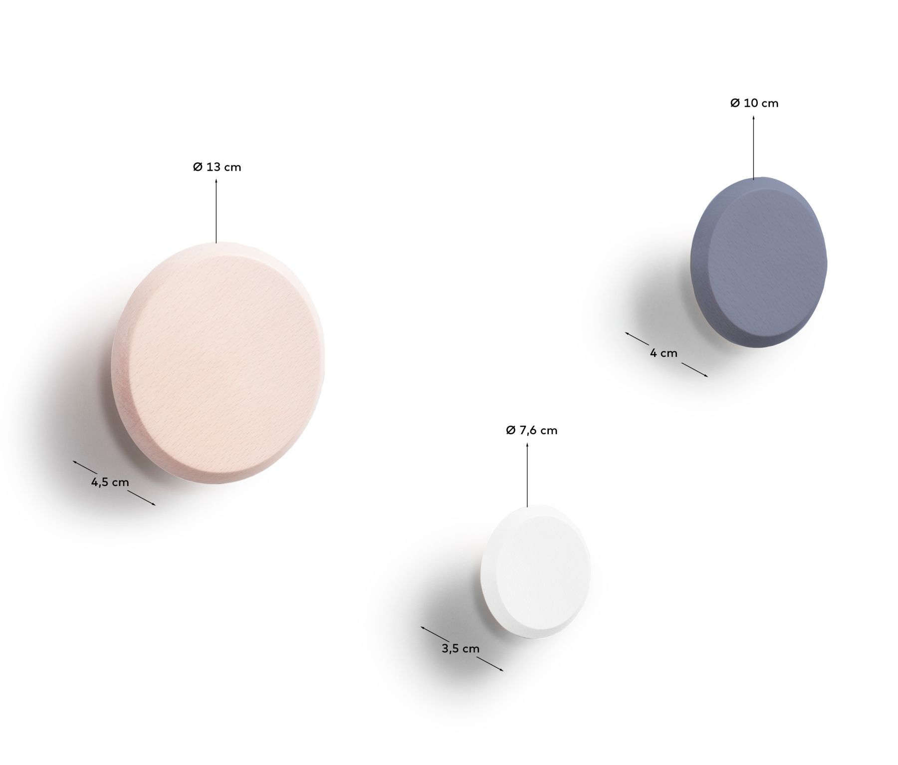 Набор из 3 вешалок из массива бука. Включает дюбели, которые можно использовать как в кирпиче, так и в гипсокартоне. Эксклюзивный дизайн, созданный командой Kave Home. Сделано в Европе с использованием кустарных технологий для снижения выбросов CO2 и меньшего воздействия на окружающую среду. Доступен в большем количестве цветов.