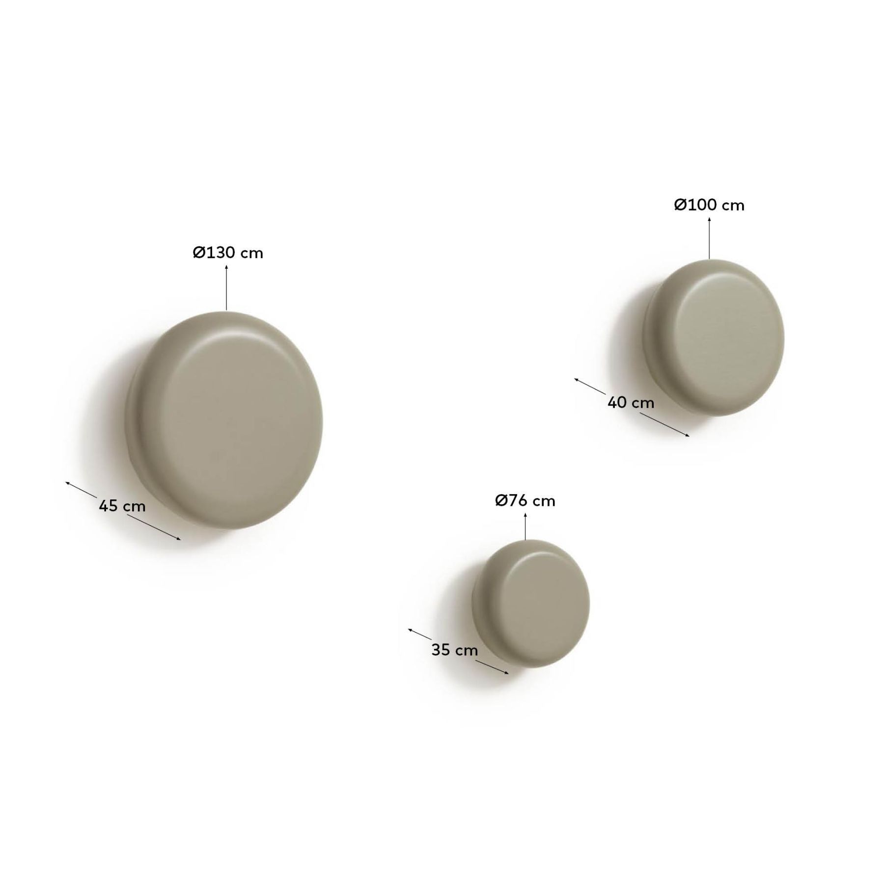 Набор Nadue из трех круглых настенных крючков из массива бука разных размеров представляет собой дизайн органических форм от команды Kave Home, произведенный на месте. Включает настенные крепления, совместимые как со сверлами, так и с гипсокартоном.