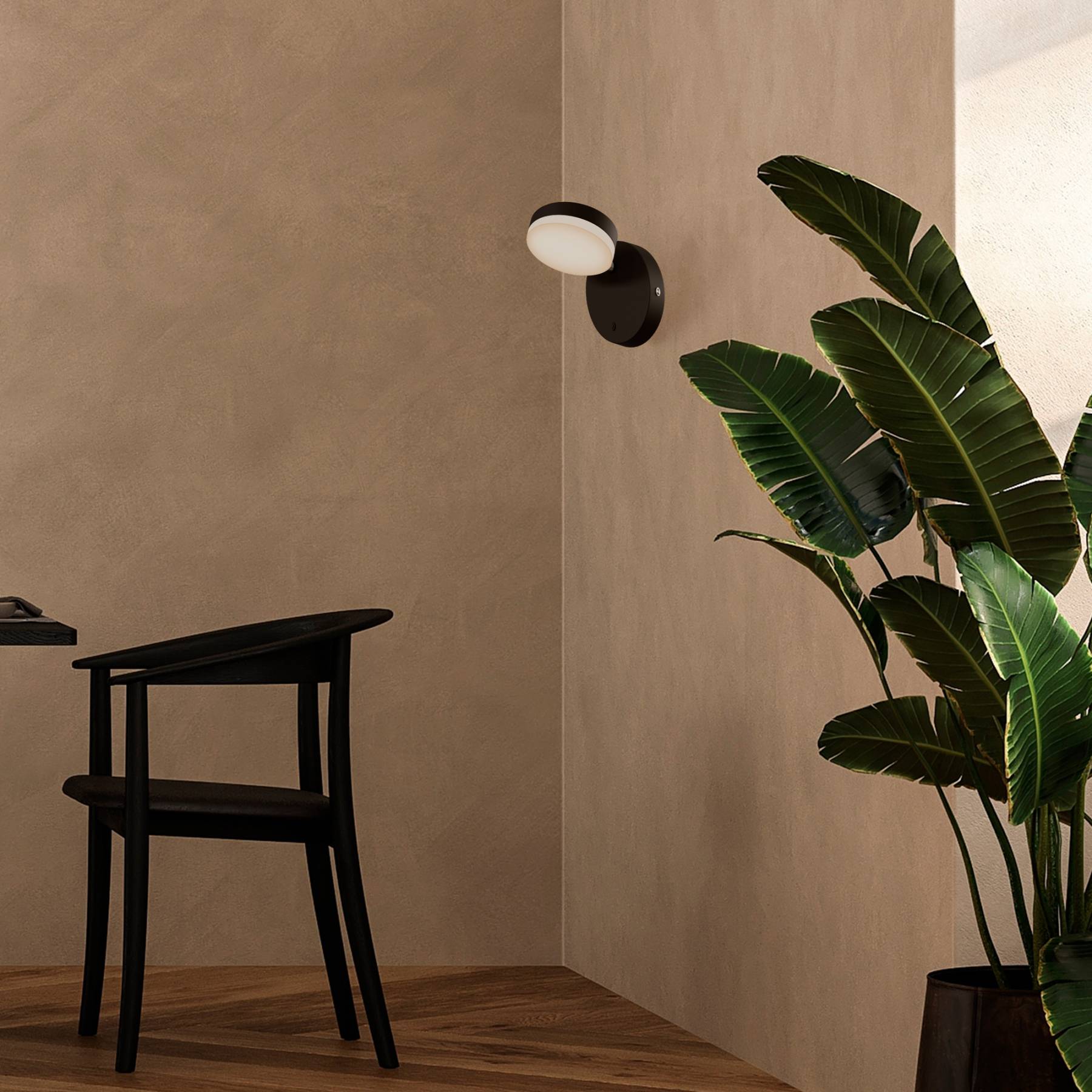 Плафоны и арматура из металла. Цвет рассеивателя — белый, арматура черная или белая. Конструкция предусматривает шарнирный механизм, позволяющий регулировать направление света и высоту светильников. Плафоны вращаются на 90 и 360° (в вертикальной и горизонтальной плоскостях). Угол рассеивания — 120 градусов. Тип света — рассеянный.