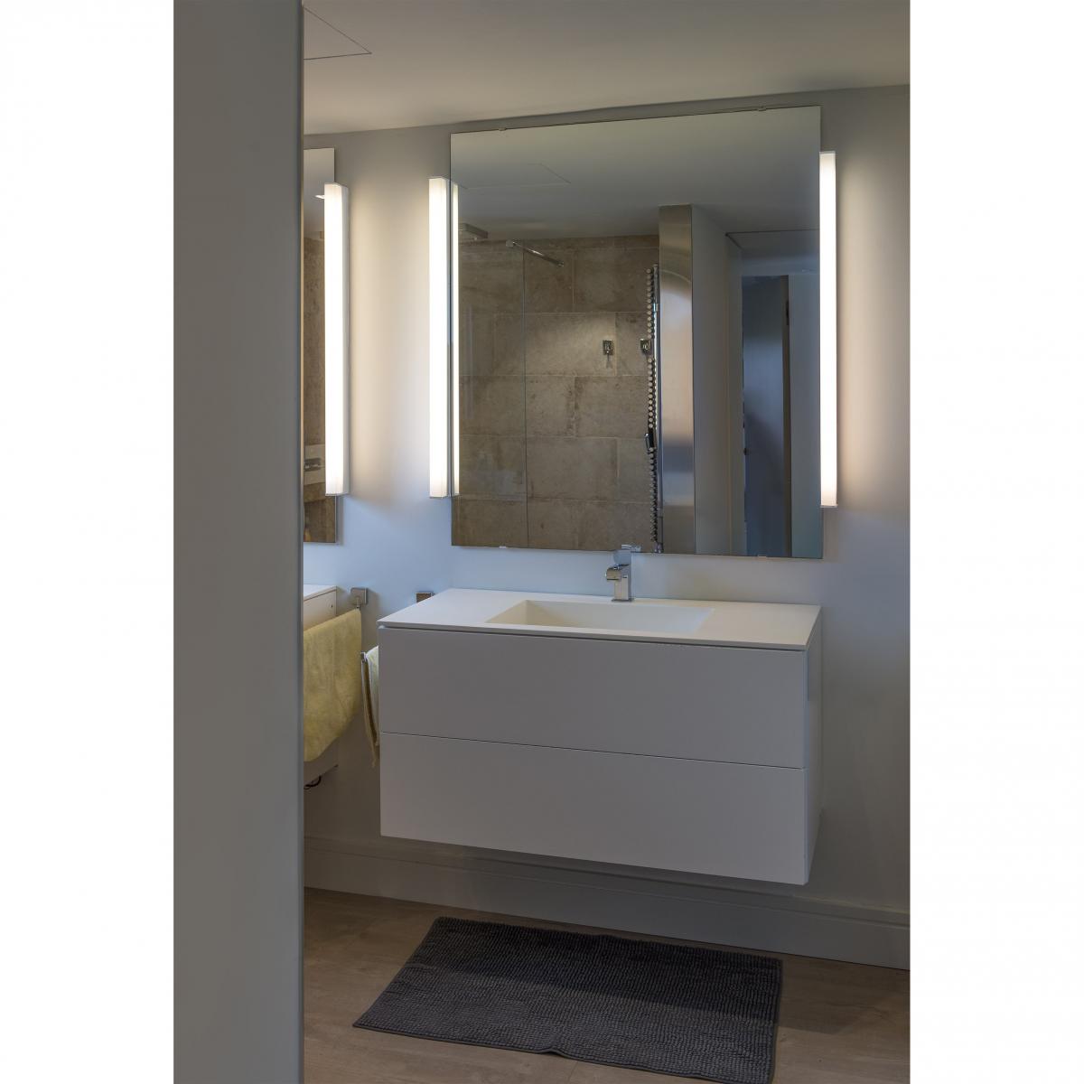 NILO - идеальный настенный светильник для освещения ванной комнаты . Благодаря своему минималистическому стилю он придает современный вид и помогает освещать зеркальную область, очень распространенное пространство для повседневного использования. Нило имеет свет вверх и вниз .