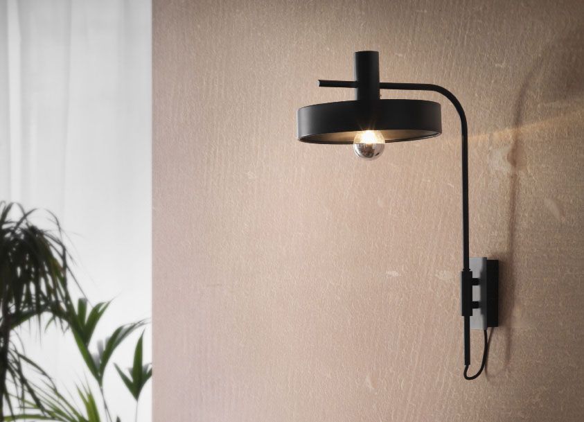Черный и золотой - это цвета, которые формируют внешний вид этой настенной лампы Aloa с круглым абажуром, который отличает ее от других. Круглый абажур имеет матовый черный цвет.