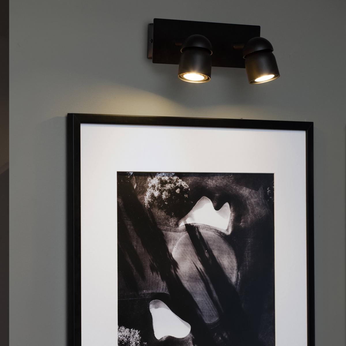 Коллекция настенных светильников, созданных Faro Lab. COCO имеет забавный дизайн, различные варианты отделки и версии. Этот черный настенный светильник с двумя светильниками, изготовленный из стали, может быть направлен на 350º по горизонтальной оси и 90º по вертикальной оси, что делает его идеальным для адаптации к каждому пространству и необходимости