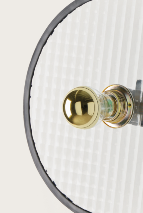 Настенный светильник, составляемый из металлического цоколя A1053/5 см и стеклянного диска 1225 Ø 30 cm или Ø 50 cm с черной окантовкой.