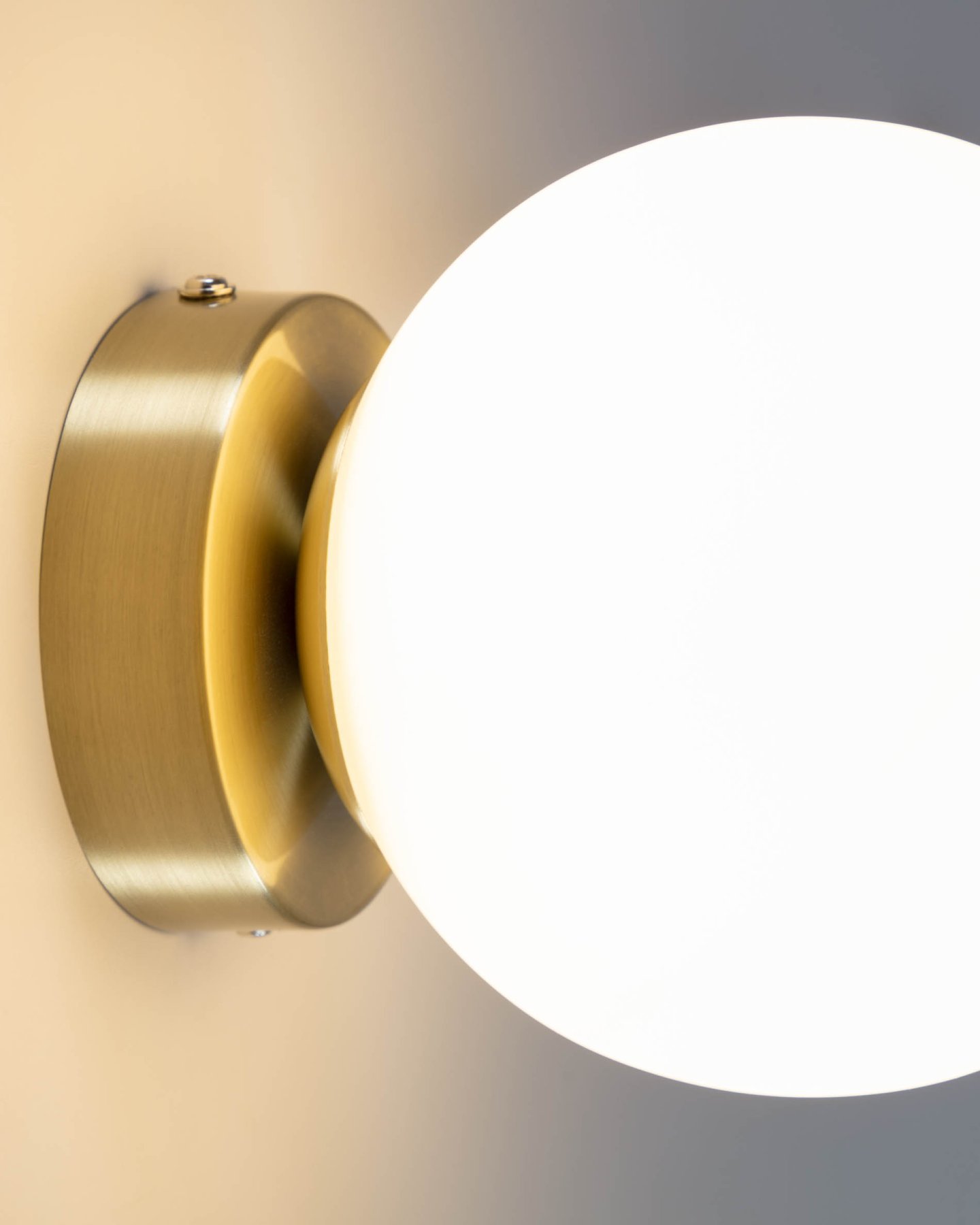 Сферический стеклянный плафон окрашен в белый матовый цвет, благодаря чему освещение будет мягким.