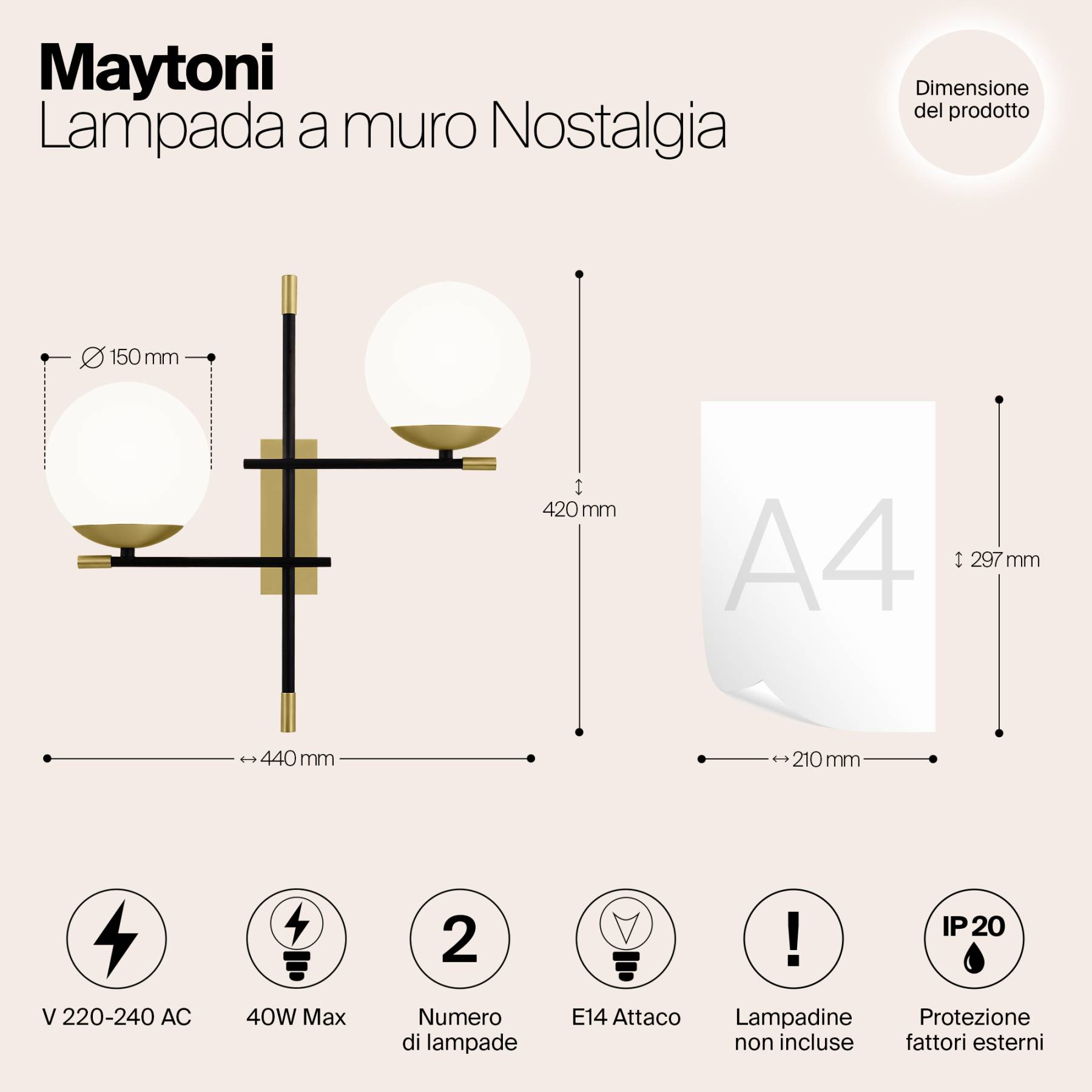 Арматура из металла в цвете матового золота. Плафоны-сферы из матового выдувного стекла. Модная асимметрия в дизайне. Источник света — лампы с цоколем Е14.