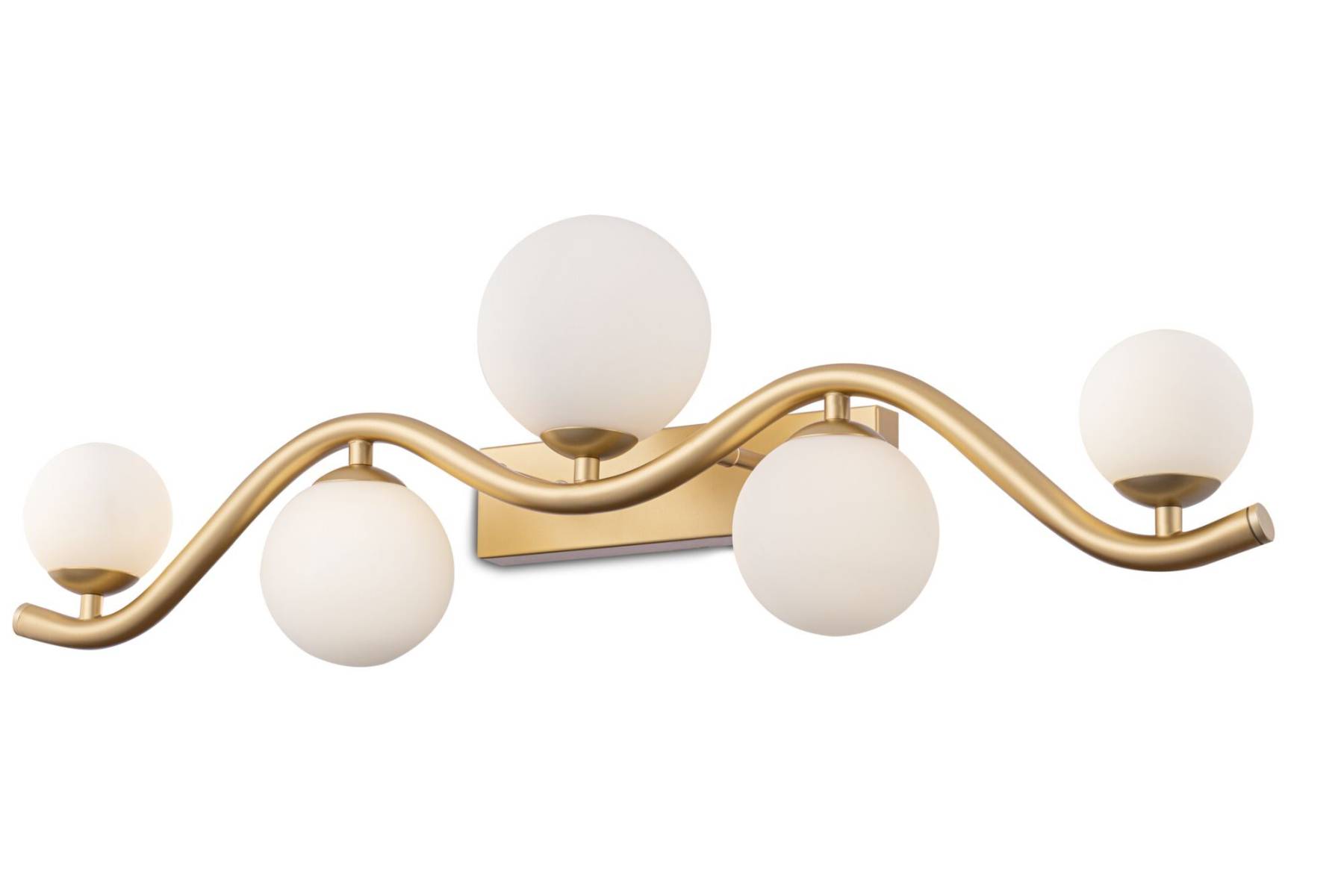 Металлическая арматура представлена в двух оттенках: хром и золото. Белые плафоны-сферы из матового стекла. Каркас оригинальной волнистой формы. Высота подвесных моделей регулируется тросом.