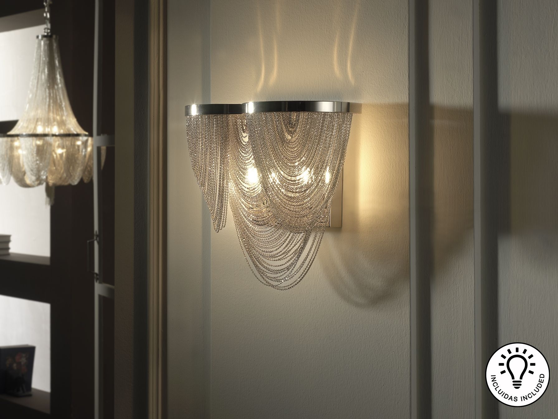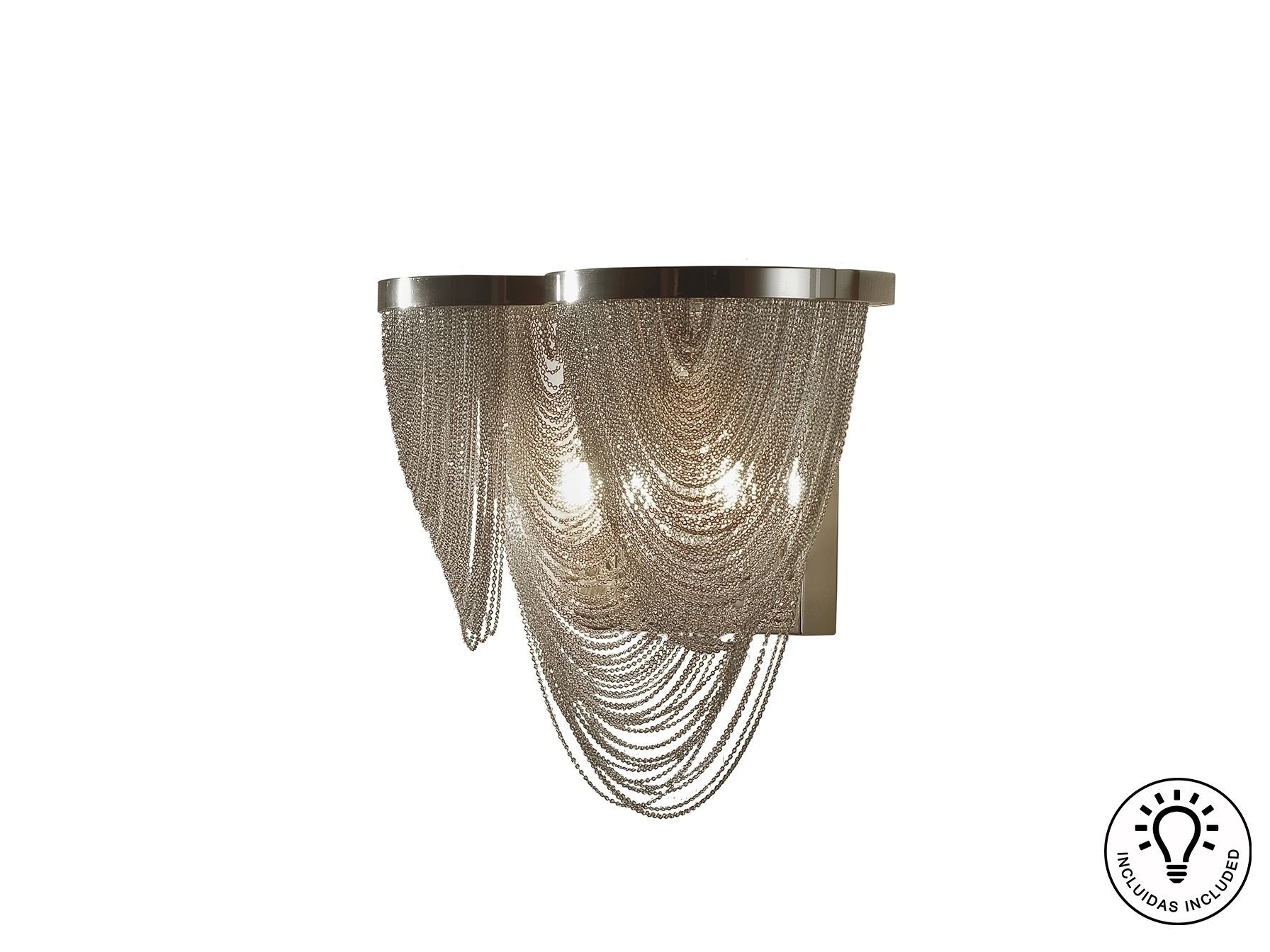 Бра, образованное тонкими декоративными цепями из металла с покрытием "никель",