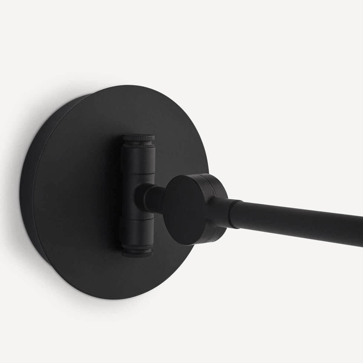 Скульптурная эстетика, радикальная и неподвластная времени, коллекция Moke из металла с эпоксидным черным покрытием или матовой отделкой цвета мокка. Бра Moke на шарнире и с подвижным диффузором, чтобы направлять свет, куда вы пожелаете: направленное освещение для чтения или рассеянное освещение.