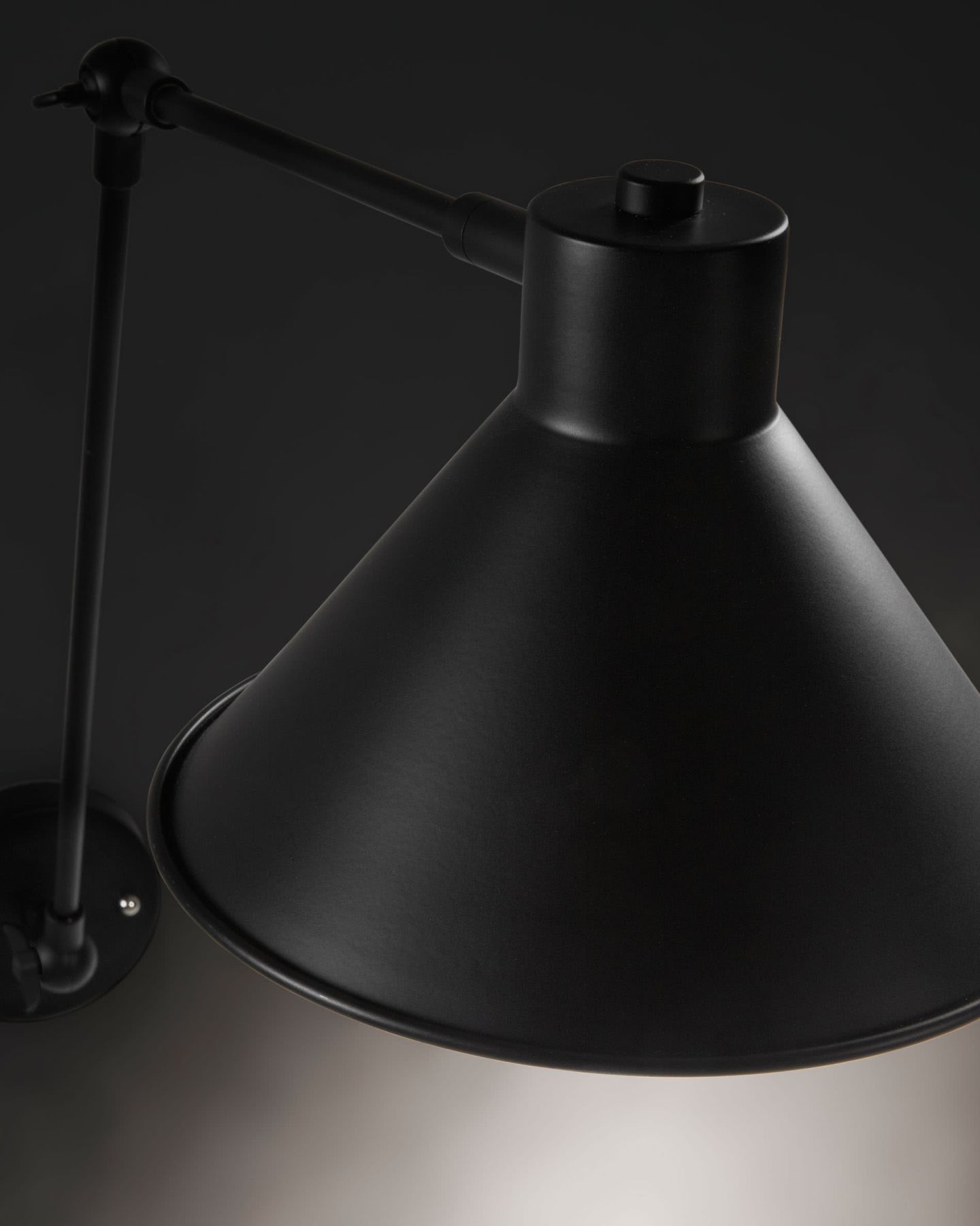 Настенный светильник Odine от фабрики La Forma (ex Julia Grup) – промышленный минимализм и практичный металл. Настенный светильник Odine совершенно однозначно подойдет для вашей городской квартиры, в которой интерьер соответствует современному стилю и требует стильных предметов интерьера. Здесь трендовая матовая фактура идеально сочетается с предложенной геометрией – лампа выглядит модно, минималистично, функционально. Выбирайте для своего стиля Odine! Лампа полностью металлическая, с матовым белым или черным покрытием (зависит от выбранной модели). Конусный абажур с широким козырьком соединяется с регулируемой трубчатой рукояткой. Такая конструкция обеспечивает широкий поток света под нужным углом. Ширина абажура по нижнему краю – 20,5 см, высота – 14,5 см. Для светильника требуется энергосберегающая лампа с характеристиками: цоколь – Е14, мощность – 40 Вт, класс энергопотребления – Е-А++, максимальная энергоэффективность – A++. Она в комплект не входит. Кабель наружу не выведен, соединяется с комнатной проводкой. Место крепежа закрывает круглая коробка-основание с диаметром 11 см. Размеры: ширина – 20 см, высота – 57 см, глубина – 35 см. Вес – 0,8 кг. Сборка не требуется. В коллекции Odine также представлен потолочный светильник с тремя аналогичными абажурами.