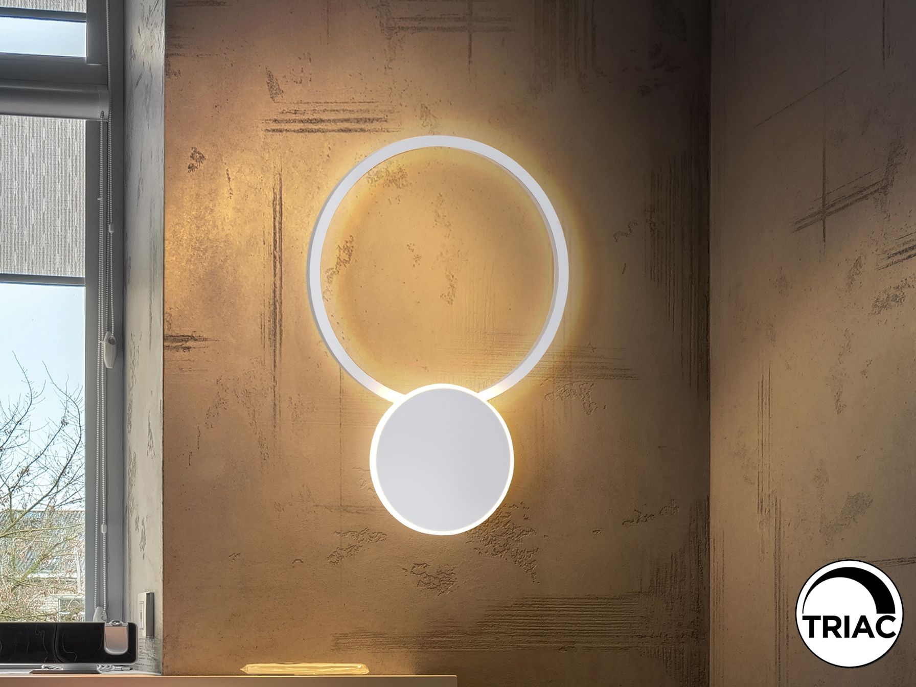 Настенный светильник из алюминия и металла, матово-белая отделка. Рассеиватель из опалового акрила. Светодиод 37 Вт, 1,687 лм. 3,000 К. РЕГУЛИРУЕМАЯ ЯРКОСТЬ.
