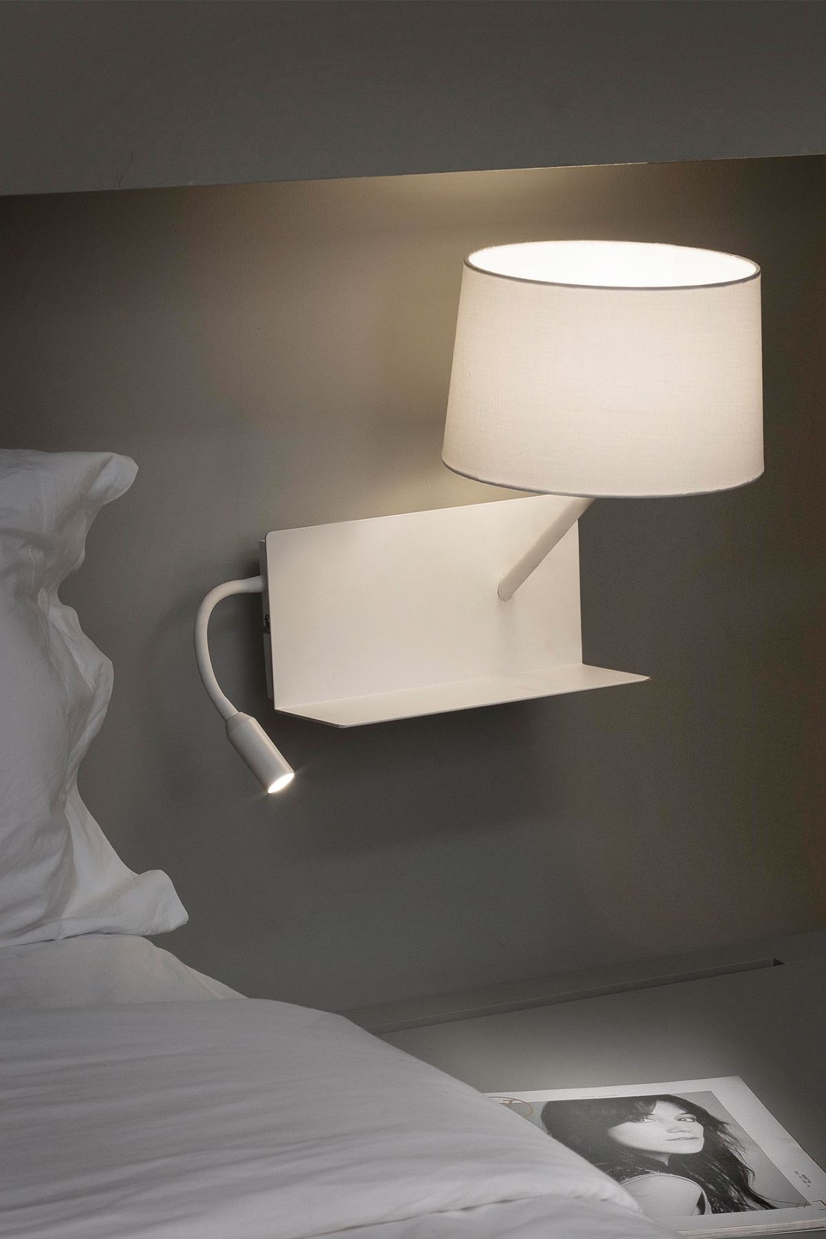 Применить со светодиодным считывателем, разработанным Jordi Blasi . Этот настенный светильник имеет минималистичный и очень городской стиль. Он имеет вход USB и полку для поддержки мобильного телефона или книги. Эта лампа идеально подходит для освещения комнат , она позволяет нам сэкономить место на тумбочке, а светодиодный считыватель идеально подходит для чтения в постели.