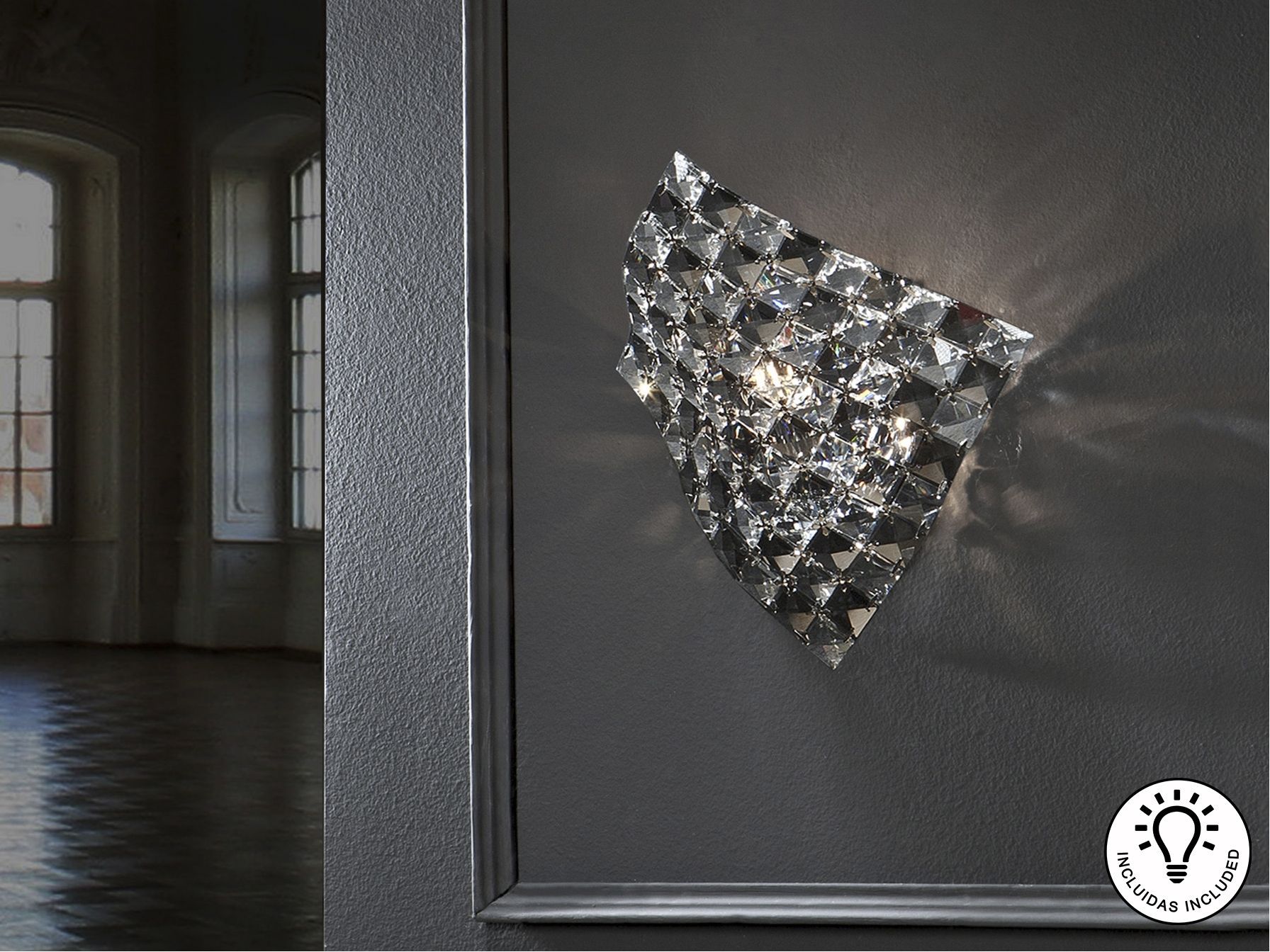 Бра из хромированного металла, плафон из скреплённых между собой кристаллов прозрачного гранёного стекла K9 и кристаллов дымчатого цвета, в стоимость входит 1 светодиод G9 6 Вт.