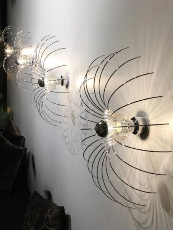 Настенный светильник Spider — одна из безусловных звёзд каталога Aromas del Campo. Дизайн этого бра запоминается с первого взгляда и цепляет надолго: своими тонкими прутьями-лапками Spider вмиг оживляет пространство, позволяя прекратить поиски необычного декора для стен в гостиной или прихожей.Вы можете купить бра Spider Aromas del Campo в двух размерах: 30 или 52 сантиметра в диаметре. Для окраски харизматичного светильника-паука на фабрике предлагают ни много ни мало пять оттенков: хром, матовый хром, золото, матовое золото, медь. Патрон у светильника типичный — Е27. Для полноты образа производитель реализует модель вместе с красивой брендовой лампочкой.