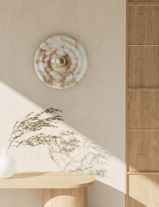 Настенный светильник, составляемый из металлического цоколя A1053 10 см и декоративного плафона из алебастра 1094/30 - 30 см.