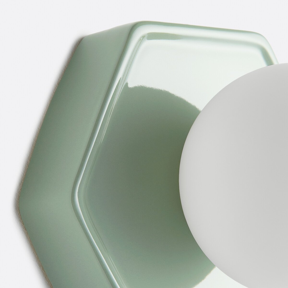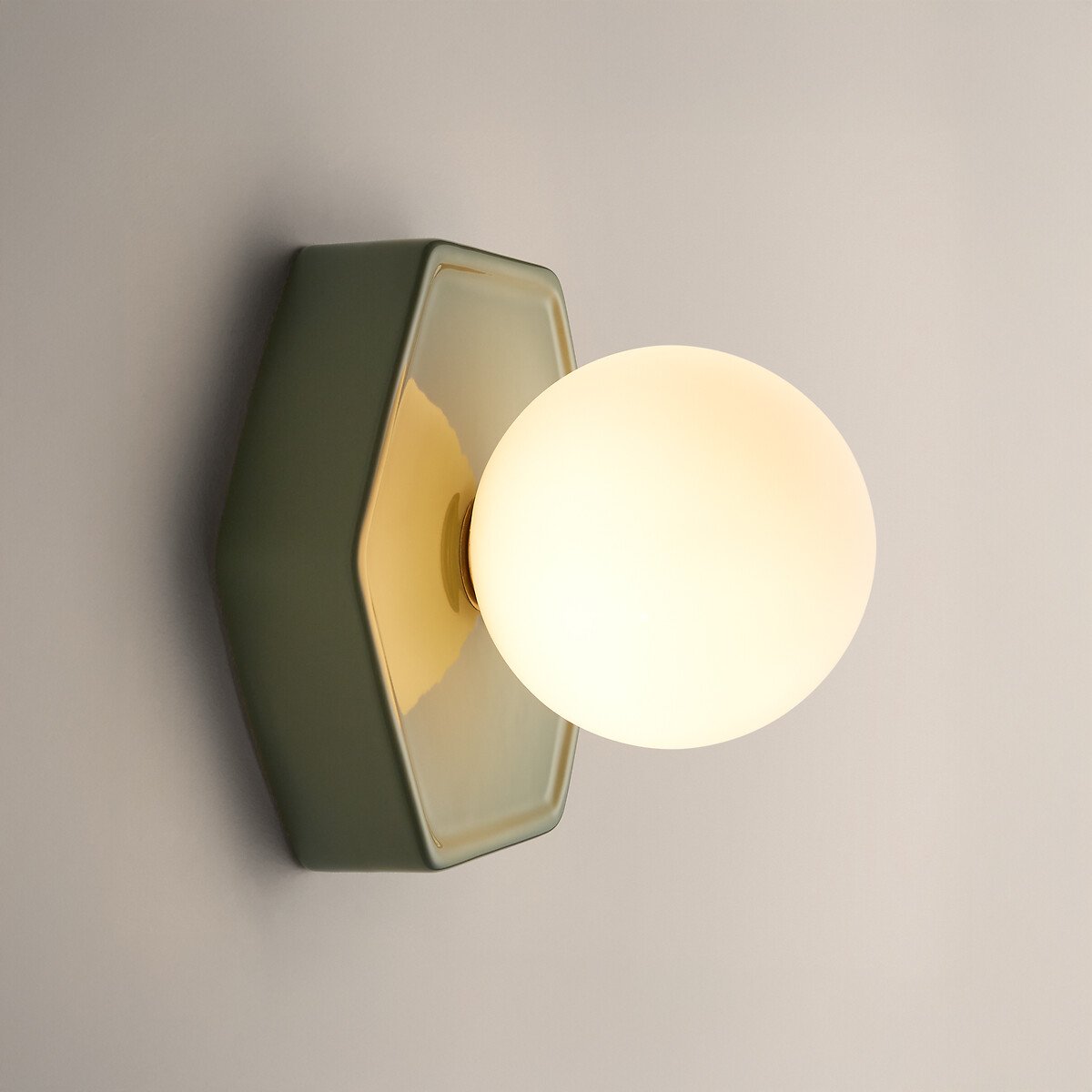 Мягкость матового опалового стекла в сочетании с оригинальным дизайном керамического основания — настенный светильник Holi привносит в современные интерьеры дух поп-музыки 70-х годов. Творение La Redoute Intérieurs.