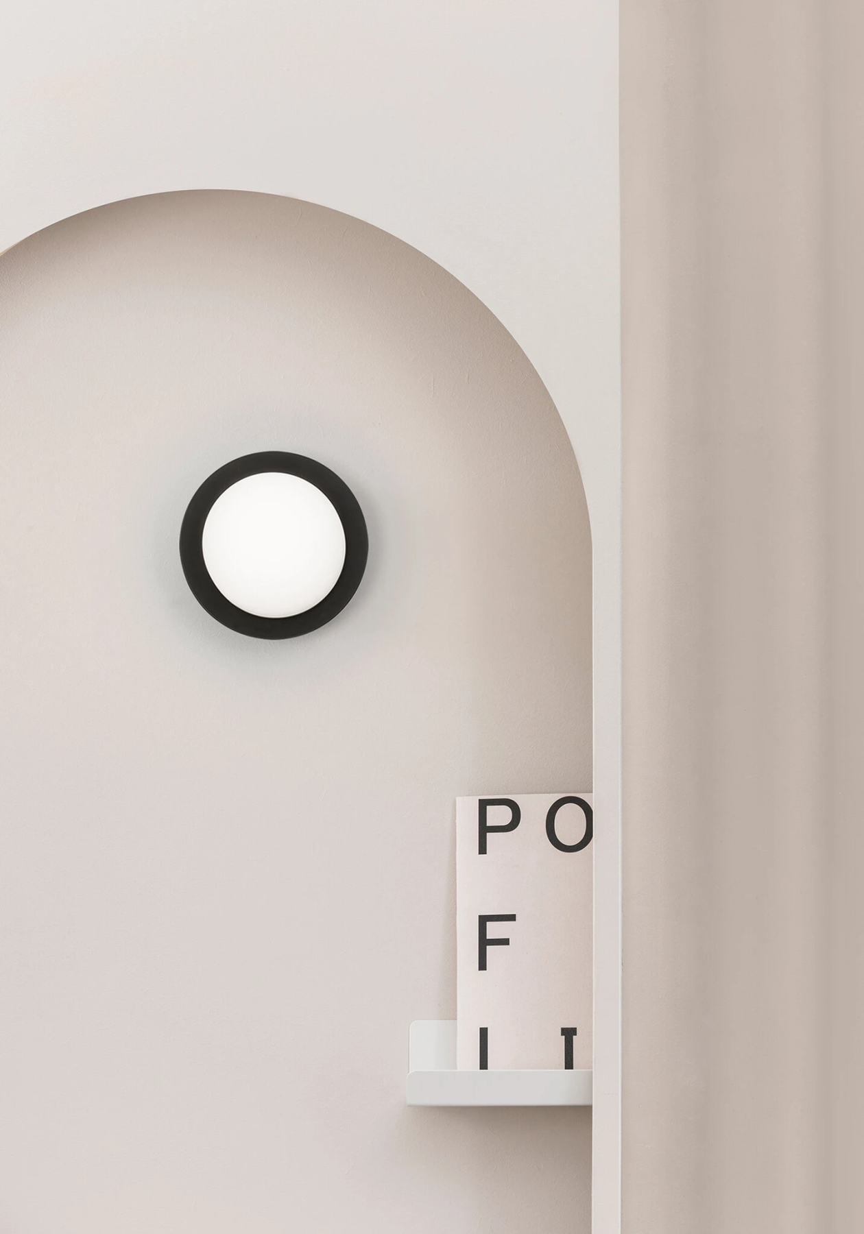 МАЙ — забавная коллекция настенных светильников, разработанная Faro Lab. Его структура имеет круглую форму, и его можно найти в пяти вариантах отделки. Его можно установить на стене или на потолке в качестве потолочного светильника, а также во многих помещениях, а также в ванной комнате благодаря степени защиты IP44. Этот черный настенный светильник излучает равномерный теплый свет и изготовлен из стали со стеклянным рассеивателем.