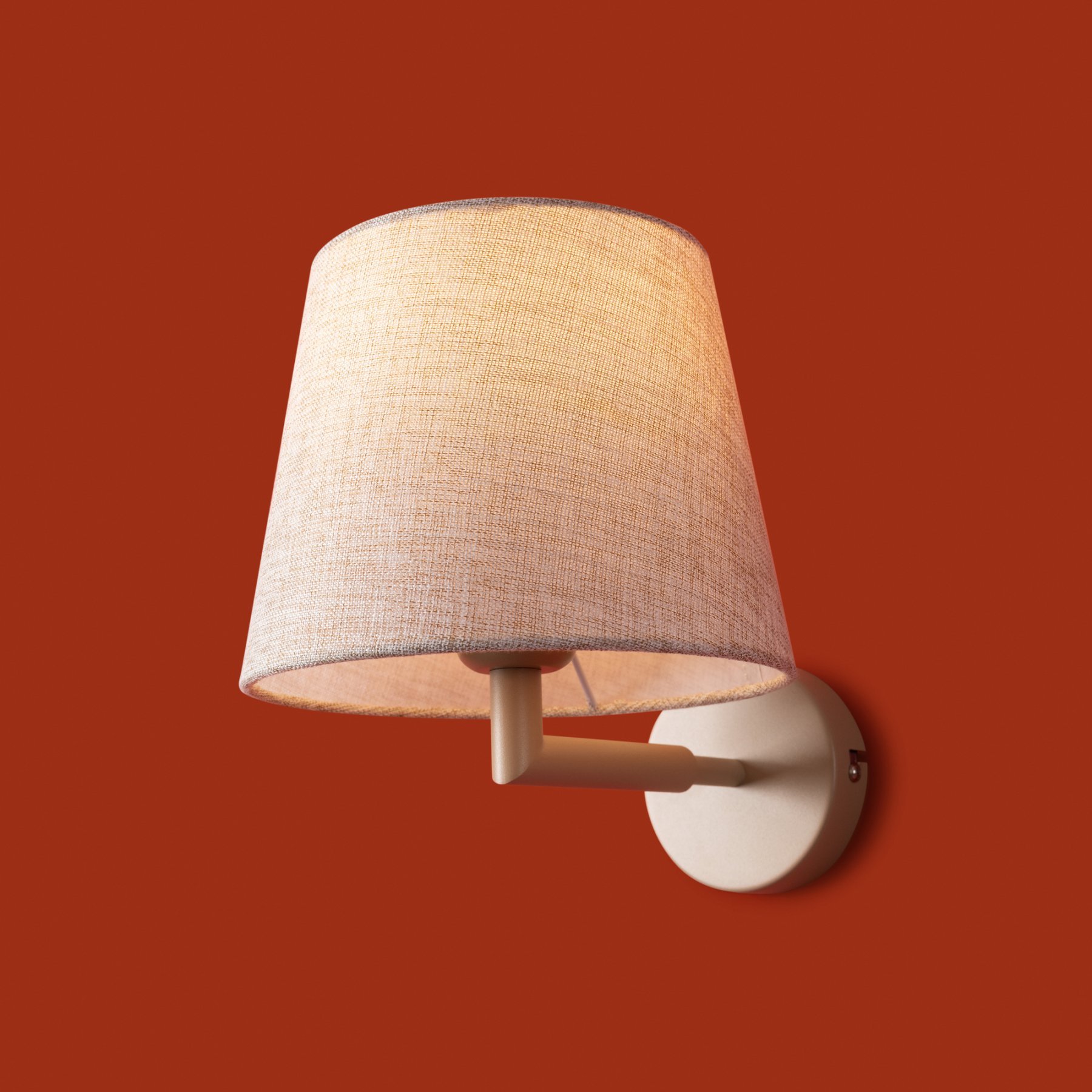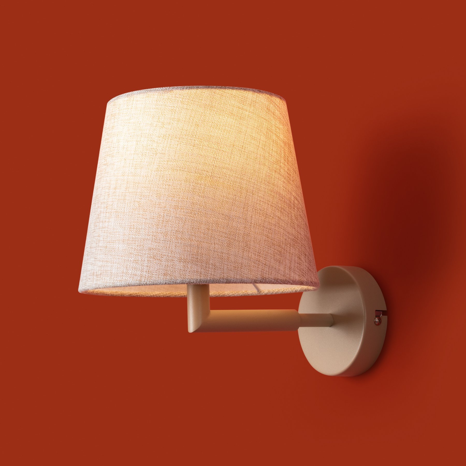 Металлическая арматура в цвете RAL 1019. Тканевые абажуры в светлых оттенках. Лампа E27 (не в комплекте).Бра с двумя источниками освещения Led и цоколь E27. Разнообразие типов светильников в серии.