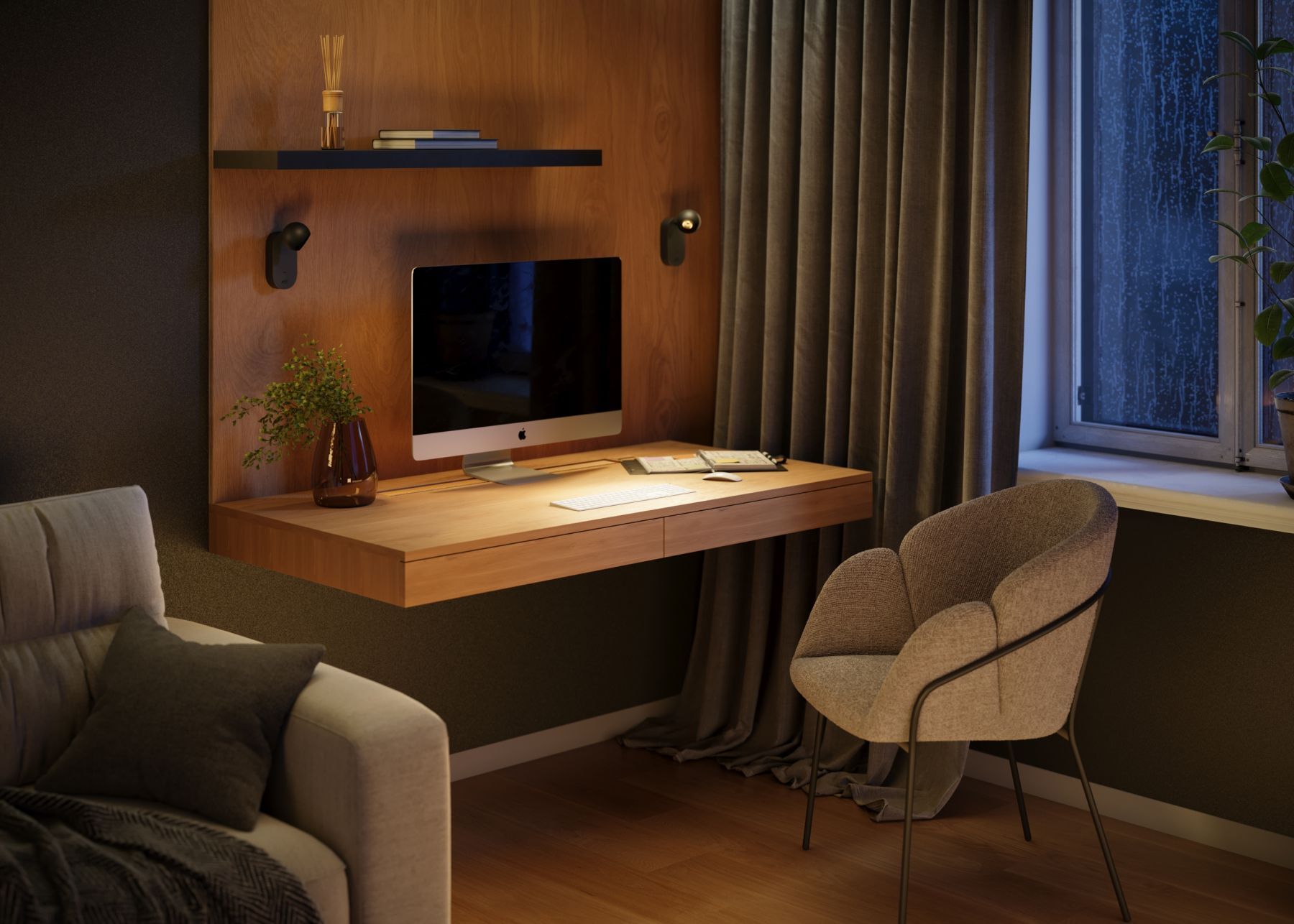 Серия настенных светильников Elfin – это верный помощник в организации пространства. Благодаря шарнирному механизму с углом вращения 180° можно направлять свет на необходимый участок. Дополнительно установлен разъем Type-C. Светильники доступны в двух цветах арматуры: черном с антибликовым покрытием и цвете сатинированной латуни. Отступ от стены всего 110 мм и легкий алюминиевый корпус делают эти светильники идеальными для локальной подсветки рабочей зоны, так и для пространства для отдыха.