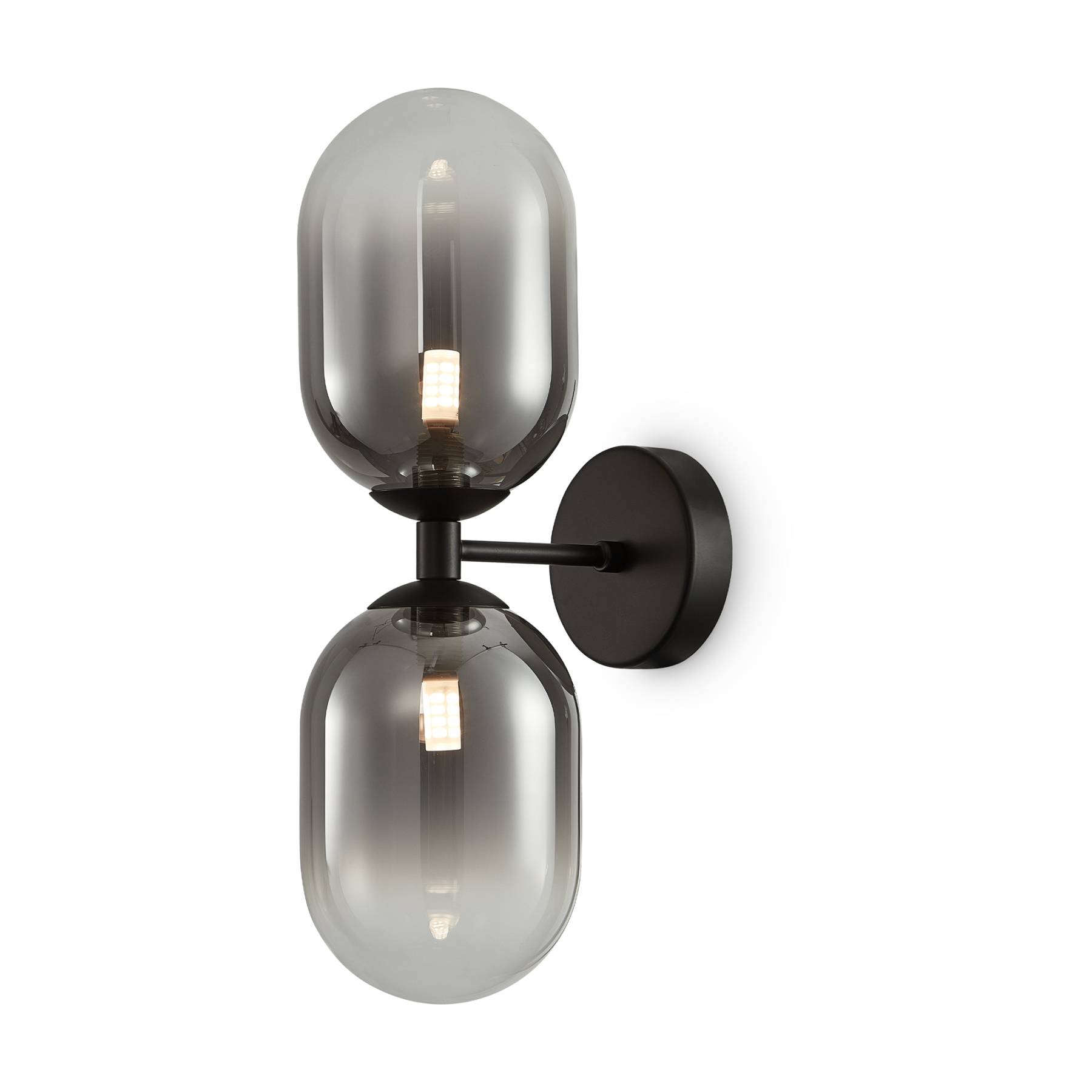 Арматура из металла матового черного цвета. Плафон из стекла с окрасом растяжка. Цвет дымчатый. Модификация — настенные, потолочные и настольные светильники. Источник света — лампа. Цоколь G9.
