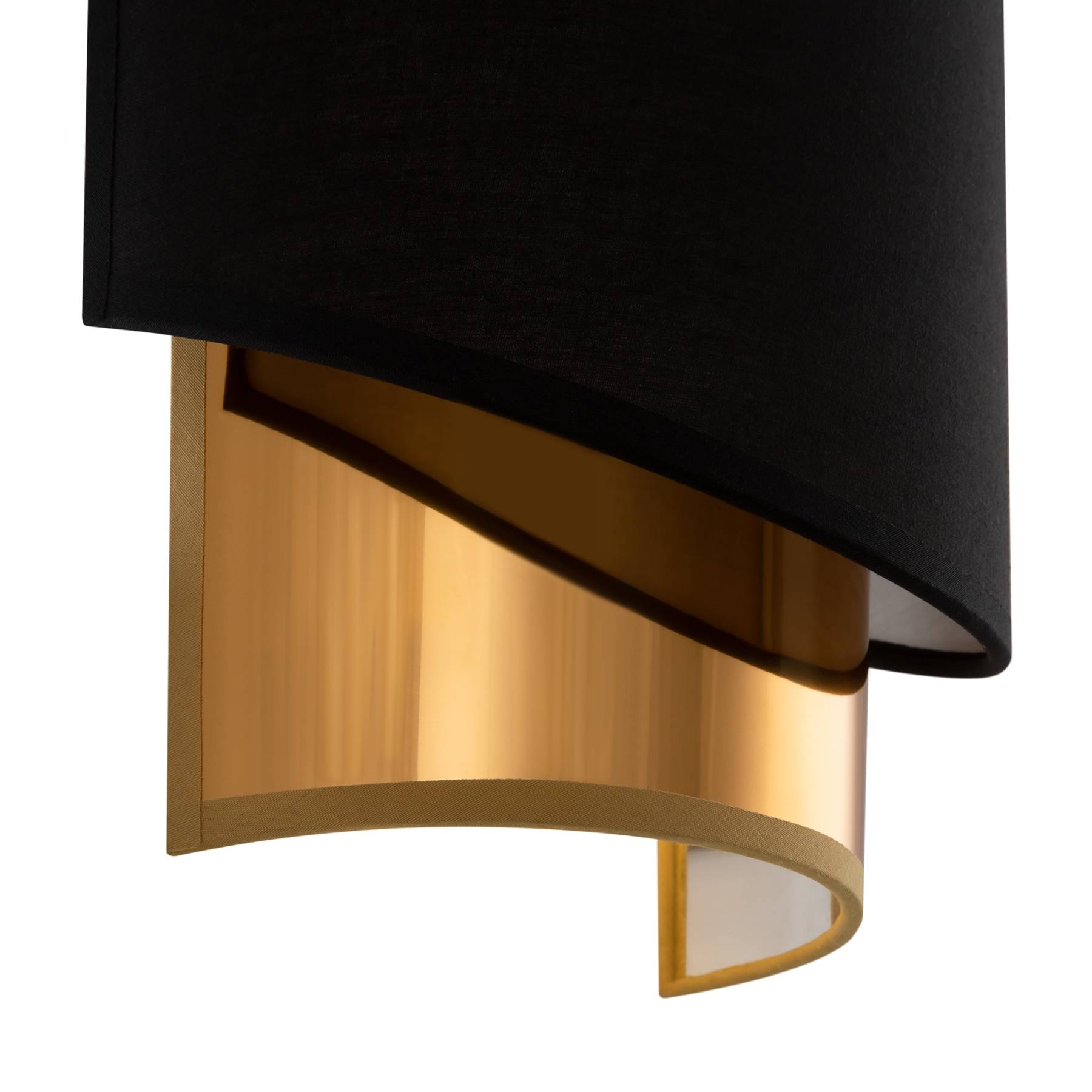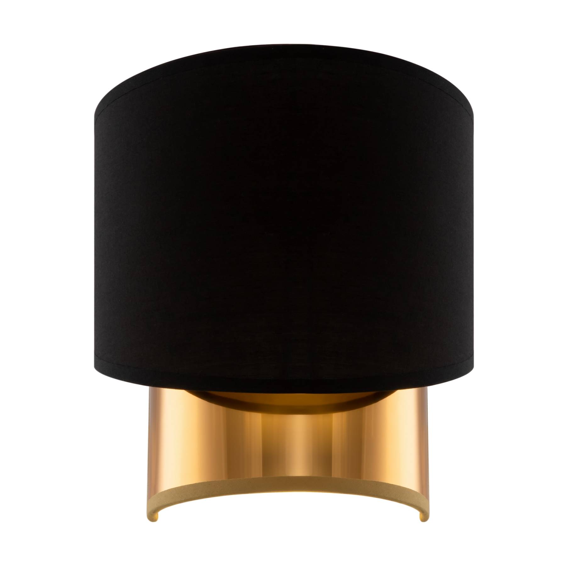 Металлическая арматура. Цвет – латунь. Черный тканевый абажур дополнен окантовкой золотого цвета. Трендовая комбинация контрастных оттенков и фактур. Источник света – лампа с цоколем Е14.