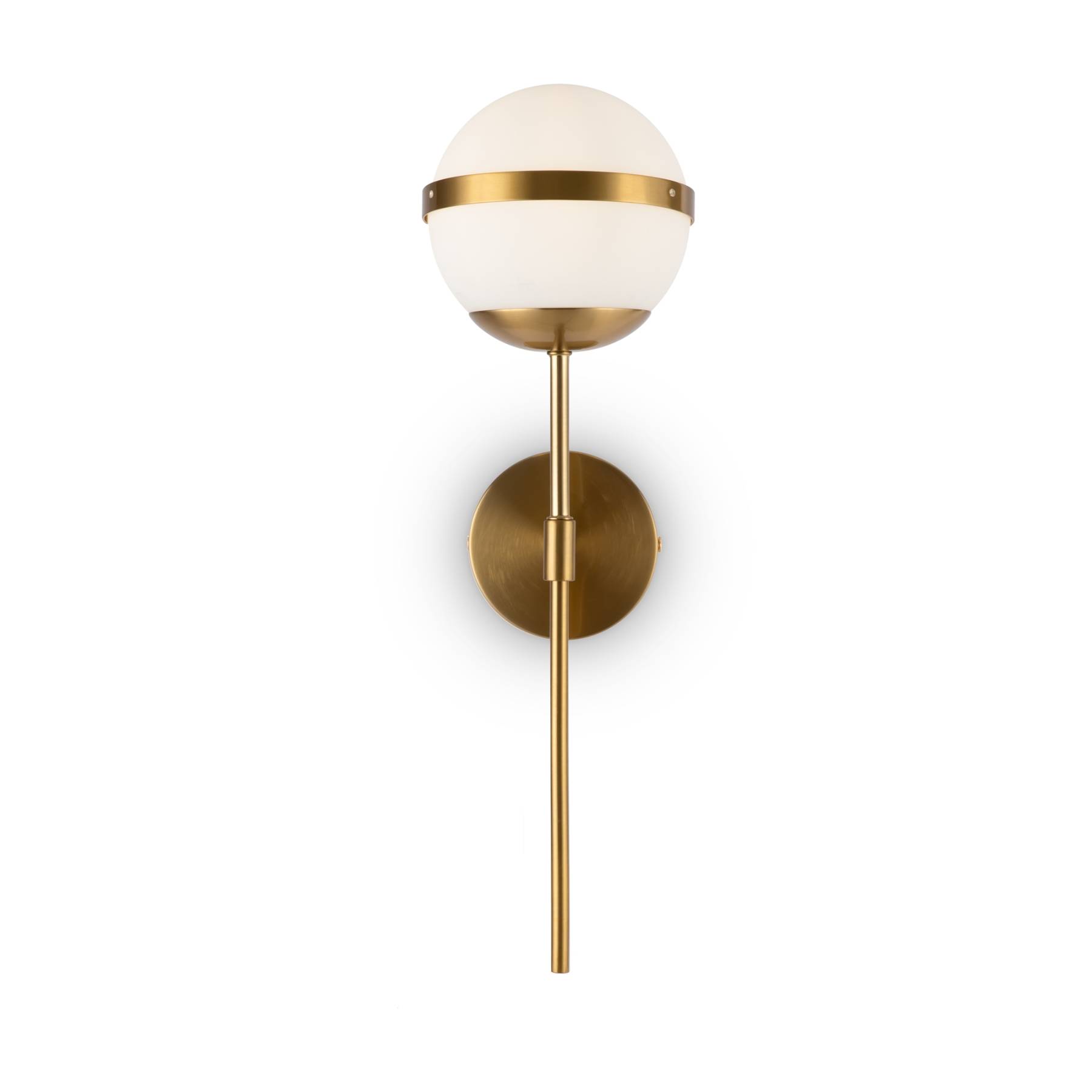 Материал арматуры – металл, цвет – латунь. Плафоны из матового белого стекла. Декор плафонов – металлический кант в тон арматуре. Оригинальная геометрия в дизайне создает динамичный образ. Источник света – лампа с цоколем Е27.