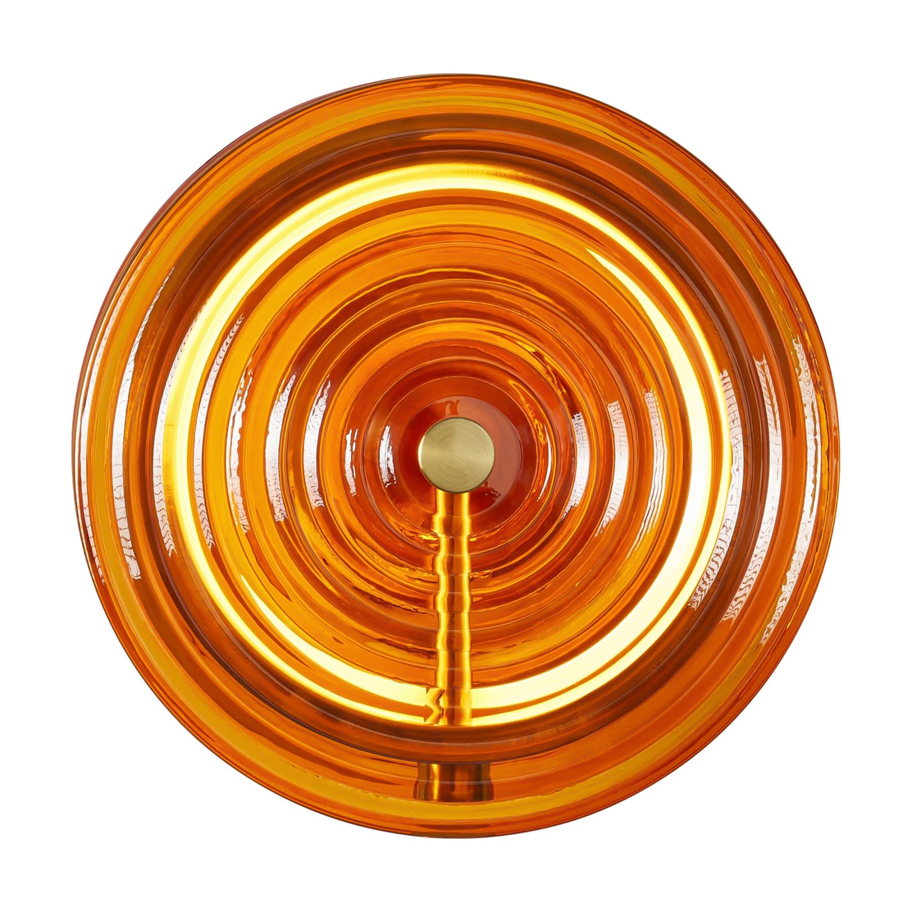 Арматура - металл. Цвет арматуры латунь. Плафоны из стекла в форме леденцов выполнены в четырех цветах: серый, зеленый, прозрачный и желто-оранжевый. Широкий спектр типов светильников: торшеры, настенные бра и подвесы. LED источник света. Цветовая температура 3000К.