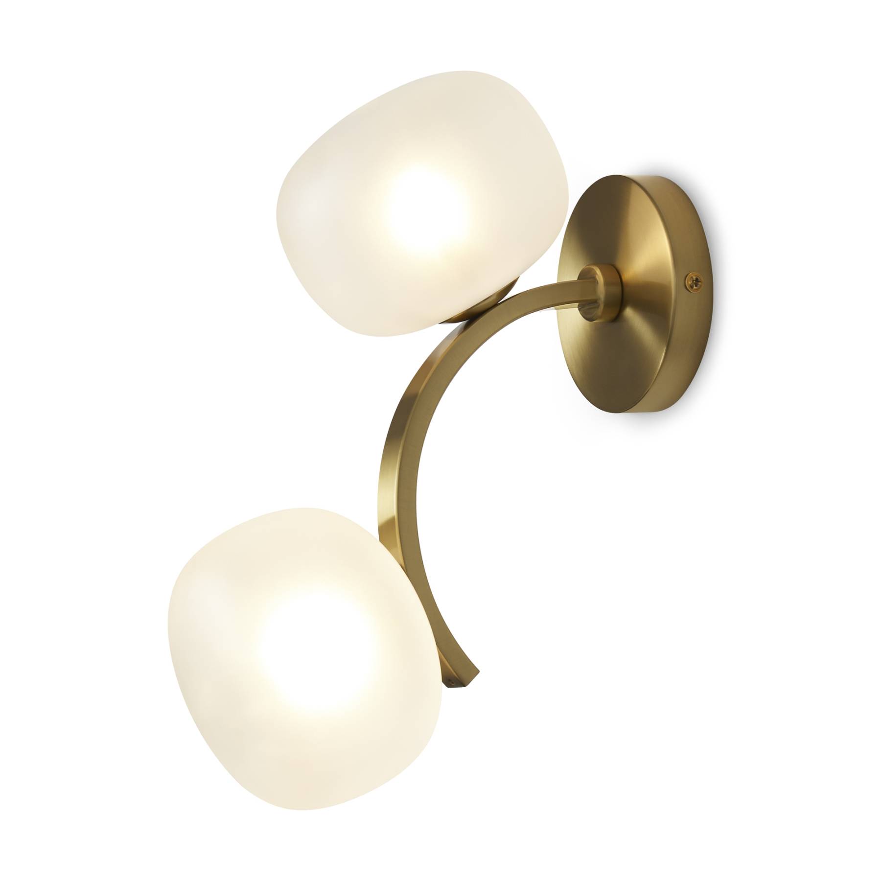 Арматура - металл. Цвет арматуры - латунь. Серия с необычной формой плафонов — немного приплюснутые, матовые белые. Настольные лампы и настенные бра выгнутой формы. Источник света лампа. Цоколь G9.