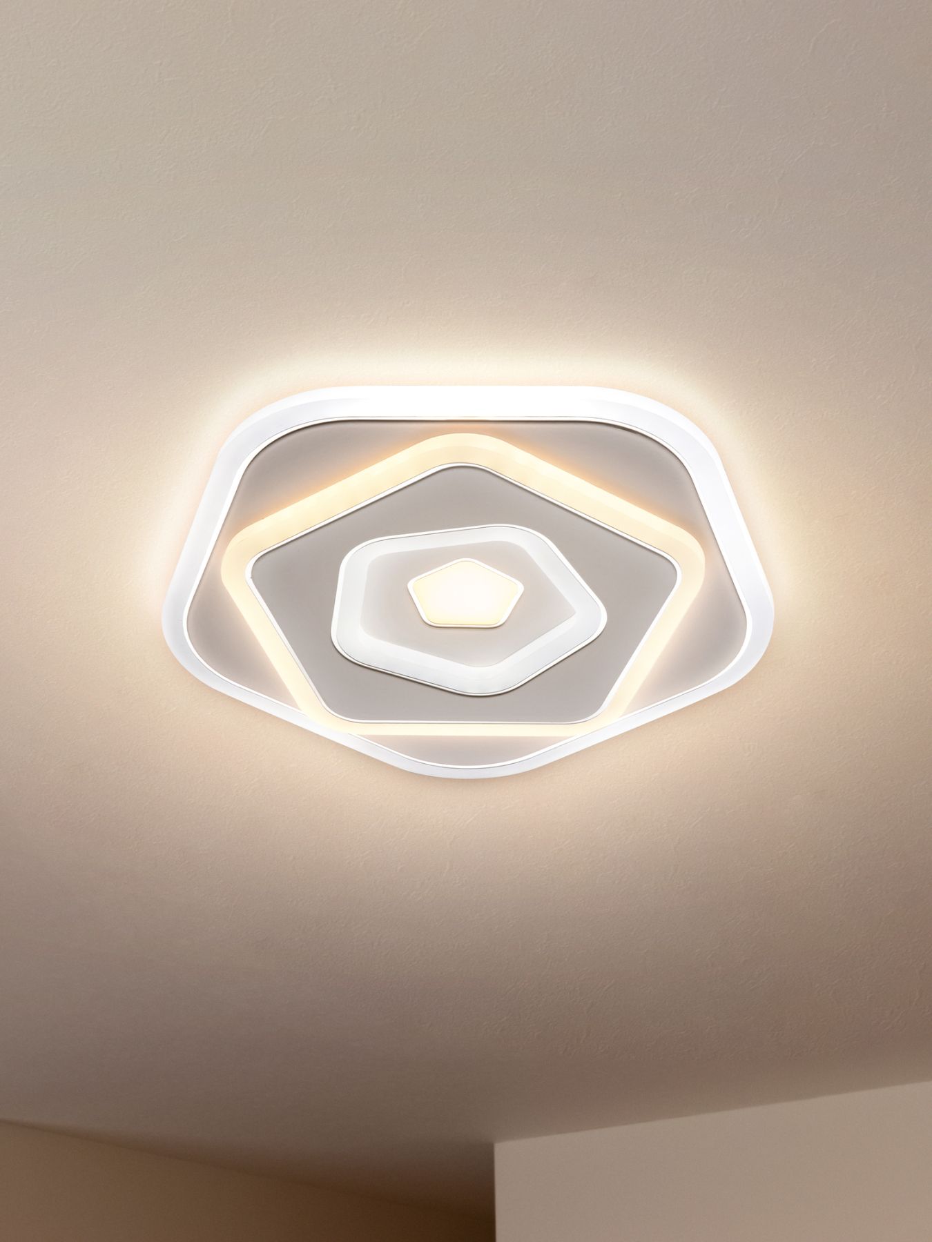 Движущийся свет – оптическая иллюзия, которая создается благодаря нетривиальному геометричному дизайну серии Iona. Четыре пятиугольника со скругленными углами наслаиваются друг на друга, привлекая внимание – такой светильник можно смело использовать в качестве визуального акцента. Его арматура сочетает металл и акрил, надежные и долговечные в эксплуатации. Белая палитра и минималистичный внешний вид идеальны для большинства современных интерьеров. LED-источники комфортны для зрения, дарят мягкий и яркий световой поток, актуальный для зон отдыха в гостиной и спальне. Чередование контуров с холодным и теплым светом позволяет светильнику стать настоящим арт-объектом. Используйте бра для акцентной и зональной подсветки в обстановках, выполненных в стиле минимализм, хай-тек, сканди, техно.