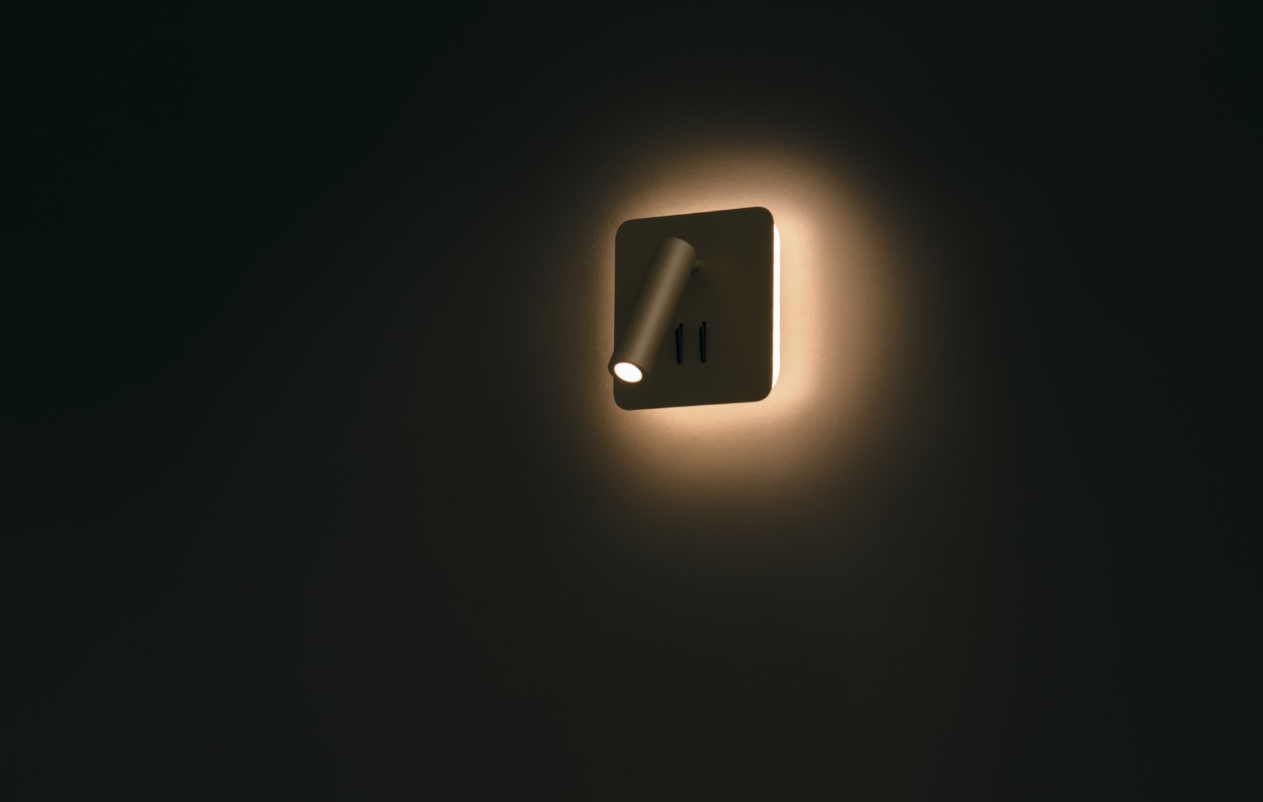 Серия компактных настенных светильников для локальной подсветки в спальнях и гостиничных номерах. Конструкцией предусмотрено два светодиодных источника света, которые можно включать совместно или раздельно. Благодаря поворотному механизму можно с легкостью регулировать направление светового потока, настраивая его под свои нужды. Мягкая подсветка создает комфортную расслабляющую атмосферу. Серия представлена моделями с круглым и квадратным корпусом в черном, белом цвете, а также в трендовом оттенке матового золота.
