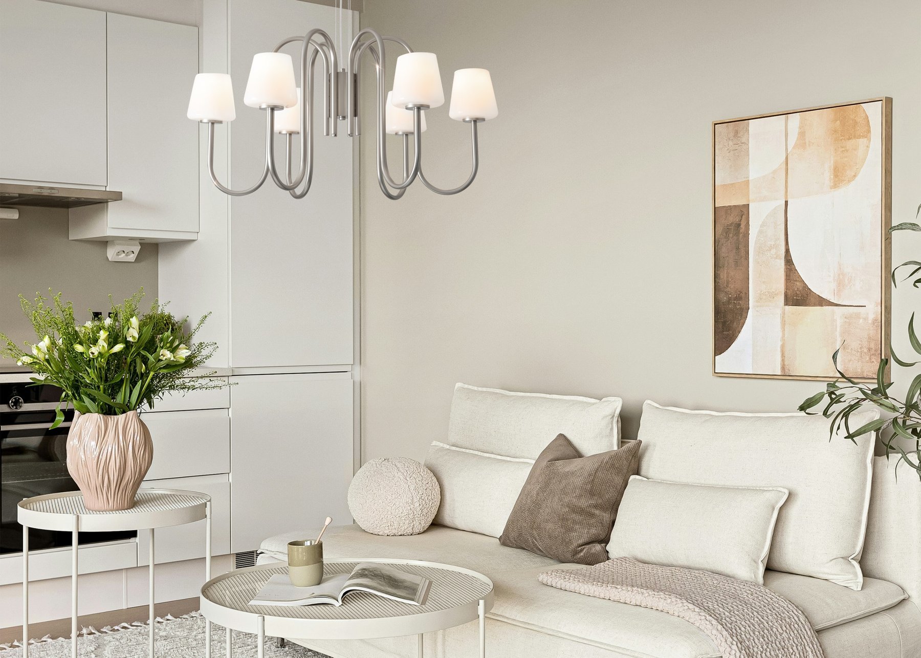 Металлическая арматура матового золота и никеля (новинка).Лампа E14 (не в комлекте). Белые глянцевые стеклянные плафоны мягко рассеивают свет. Минималистичная классика для любых интерьеров.