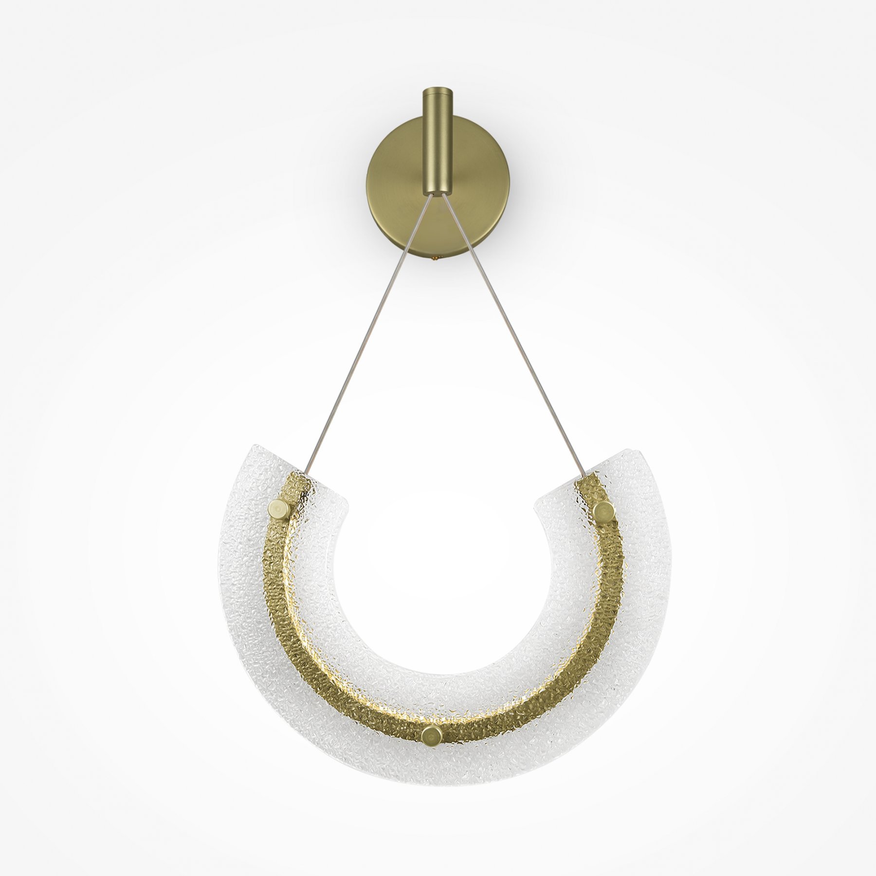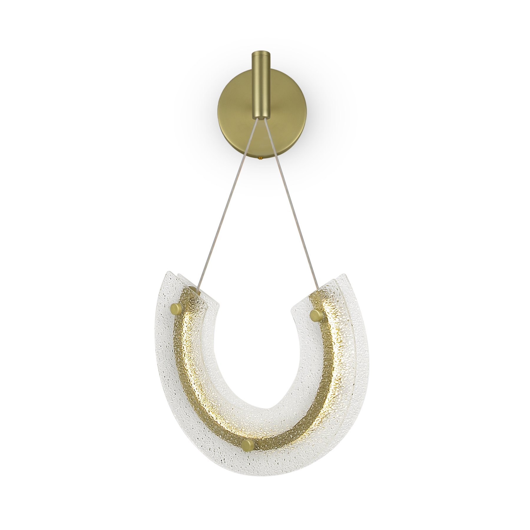 Металлическая арматура в золотом цвете. Декор — фактурное прозрачное стекло. Дизайн, вдохновленный ювелирным искусством Мезоамерики. LED-источник света. Цветовая температура 3000К.