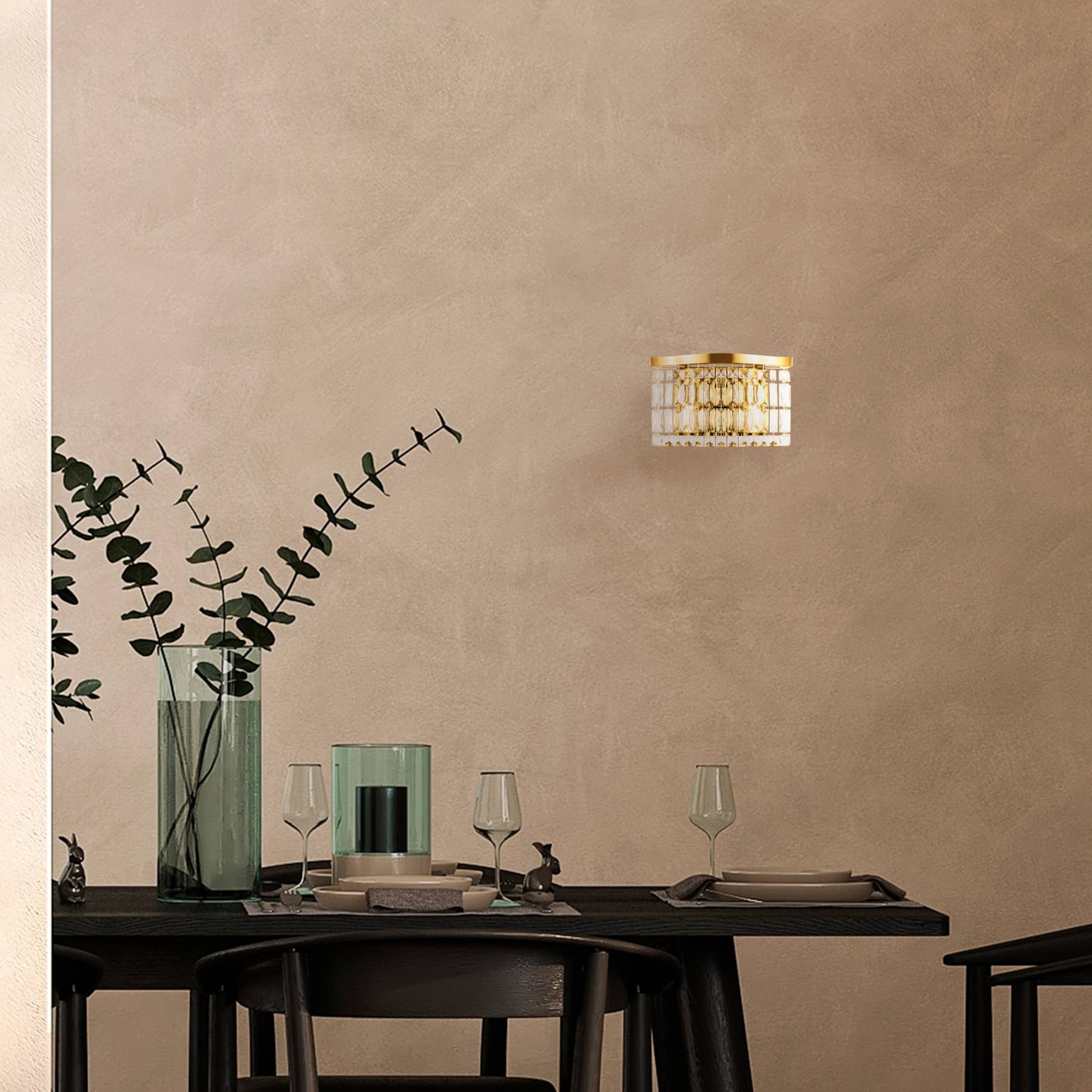 Металлическая арматура в двух оттенках: хром, золото. Декор – прозрачные кристаллы. Потолочные модели имеют два яруса подвесок. Высота подвесной люстры регулируется тросом.