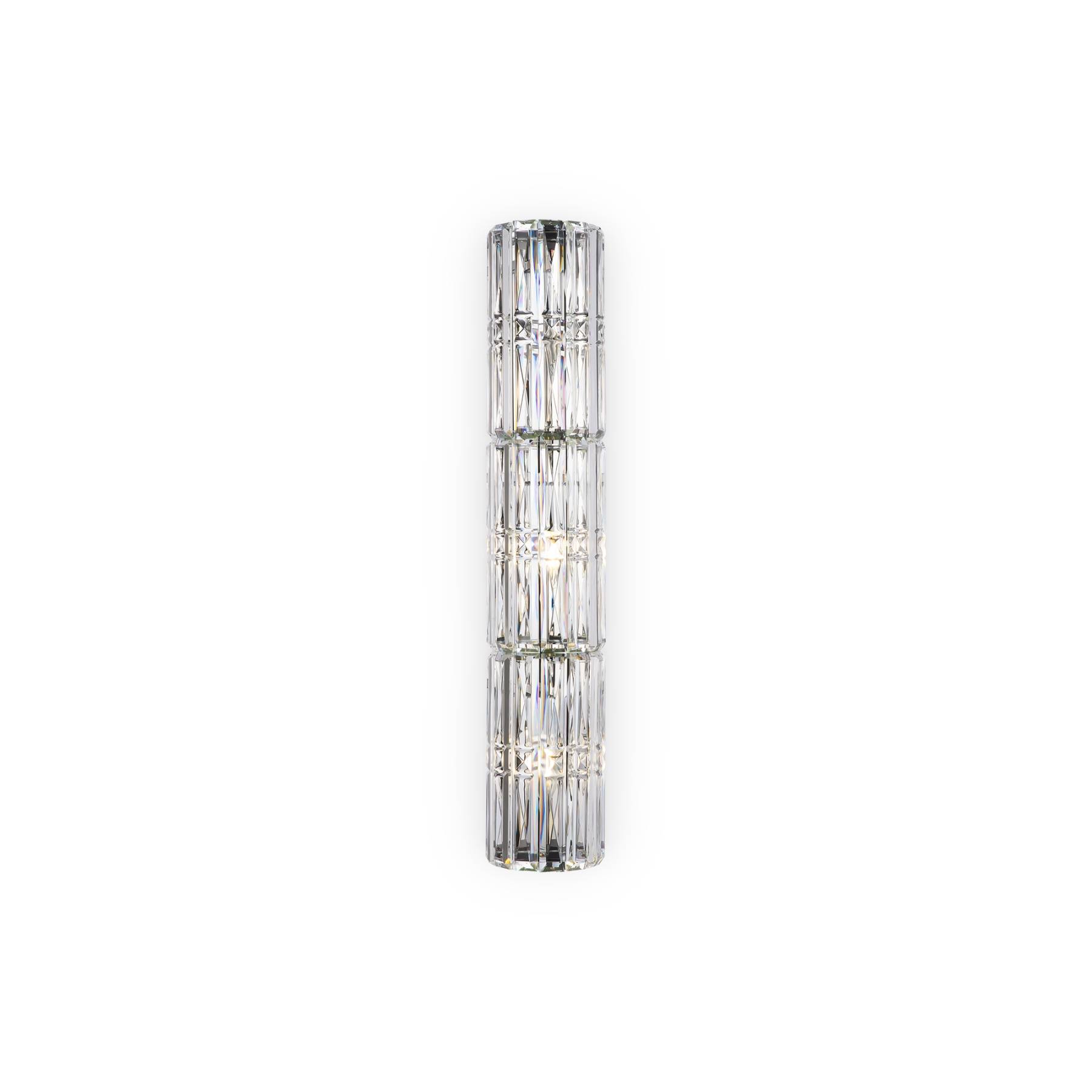 Материал арматуры – металл, оттенки – хром и золото. Декор – прозрачные стек лянные кристаллы. Архитектурная огранка декоративных элементов. Цоколь Е14.